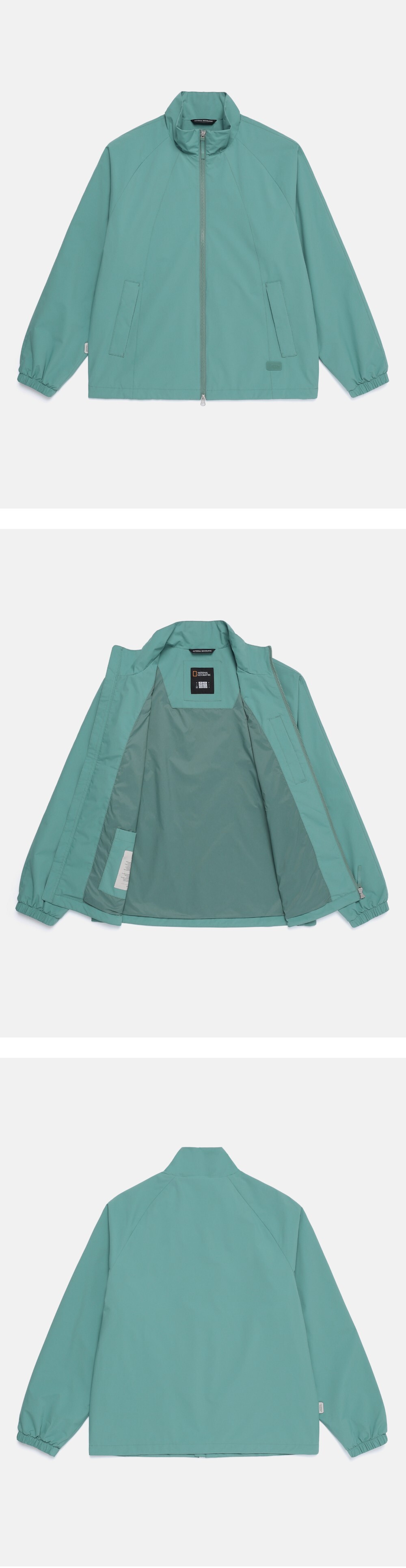 Softshell stand collar jacket features variated stitching detail and raglan line with hem drawstring in a semi-oversized fit for enhanced comfort and versatile styling.