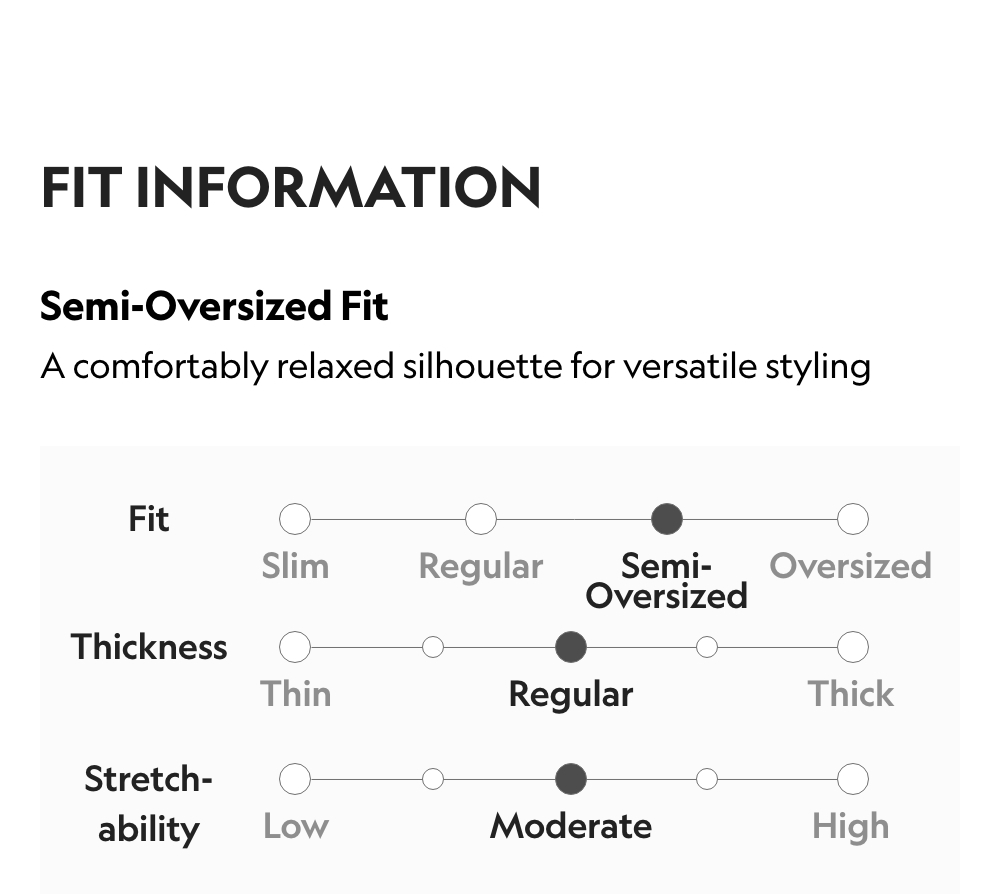 Semi-Oversized Fit / Thickness: Regular / Stretchability: Moderate