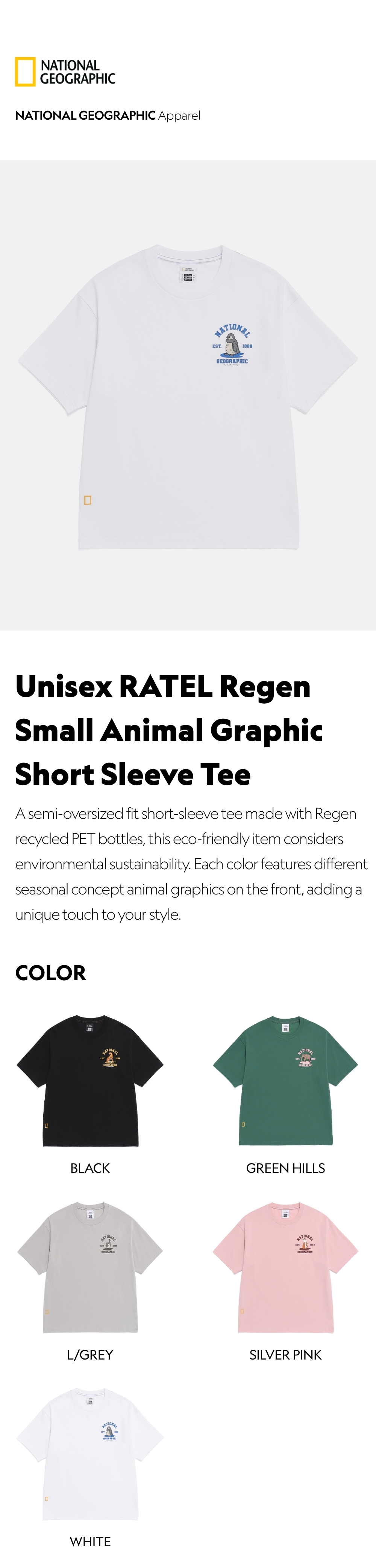 A semi-oversized fit short-sleeve tee made with Regen recycled PET bottles, this eco-friendly item considers environmental sustainability. Each color features different seasonal concept animal graphics on the front, adding a unique touch to your style.