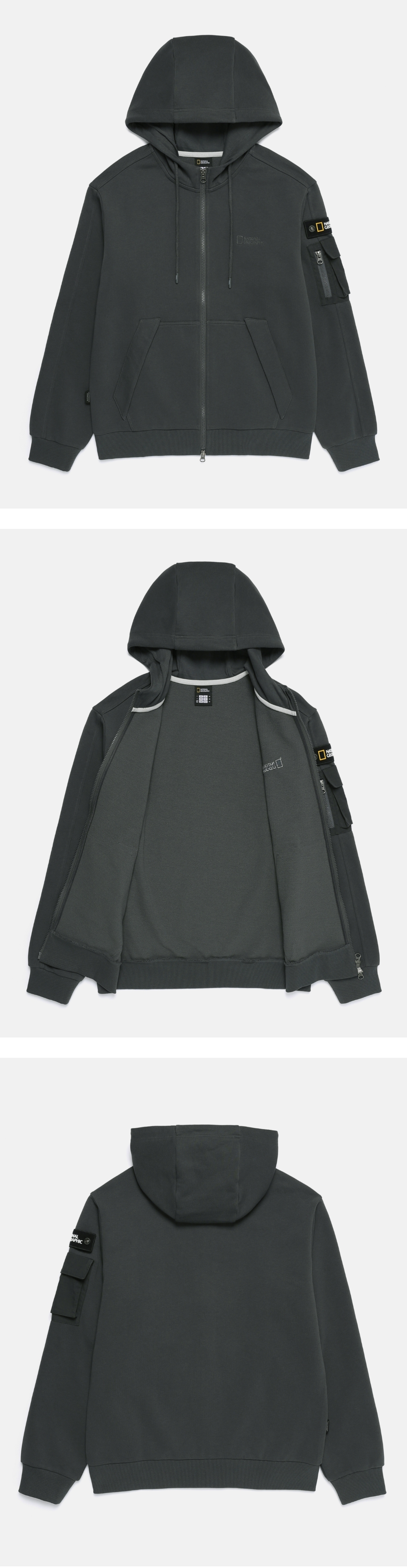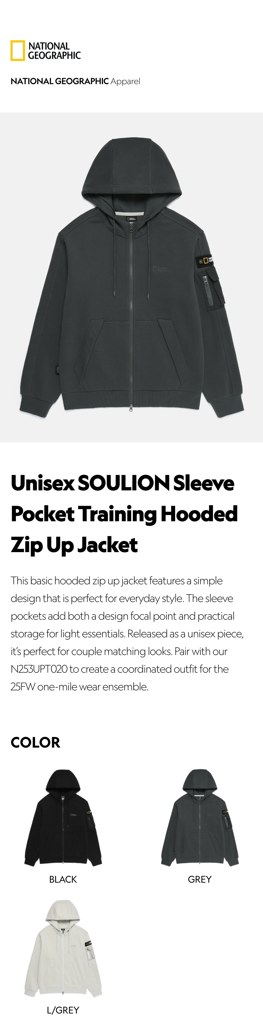 - This basic hooded zip up jacket features a simple design that is perfect for everyday style. The sleeve pockets add both a design focal point and practical storage for light essentials. Released as a unisex piece, it's perfect for couple matching looks. Pair with our N253UPT020 to create a coordinated outfit for the 25FW one-mile wear ensemble.