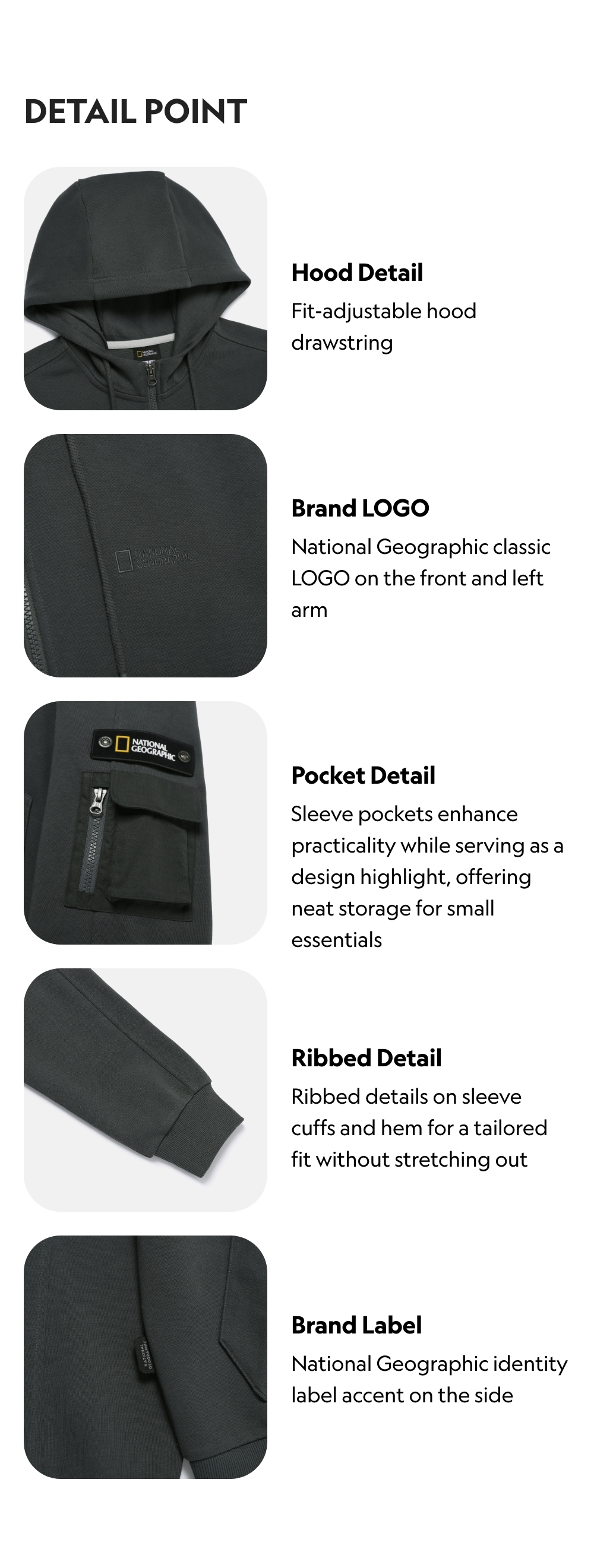 -Brand LOGO: National Geographic classic LOGO on the front and left arm