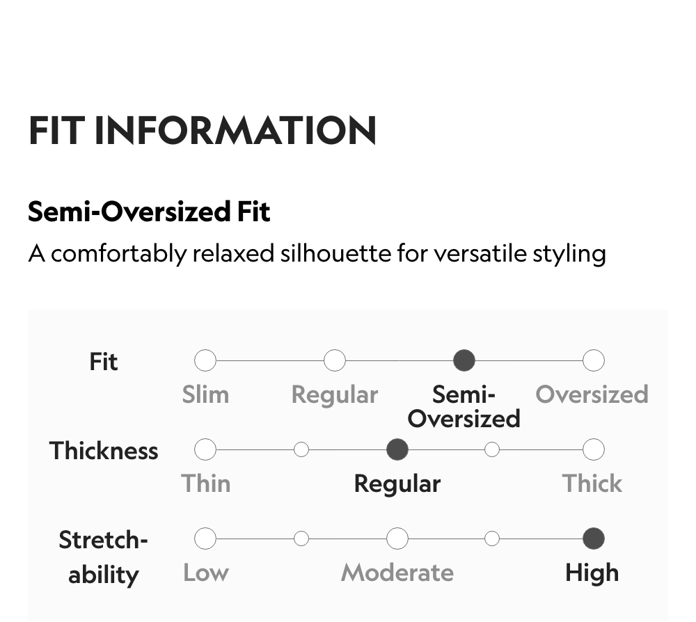 -Semi-Oversized Fit: A comfortably relaxed silhouette for versatile styling
