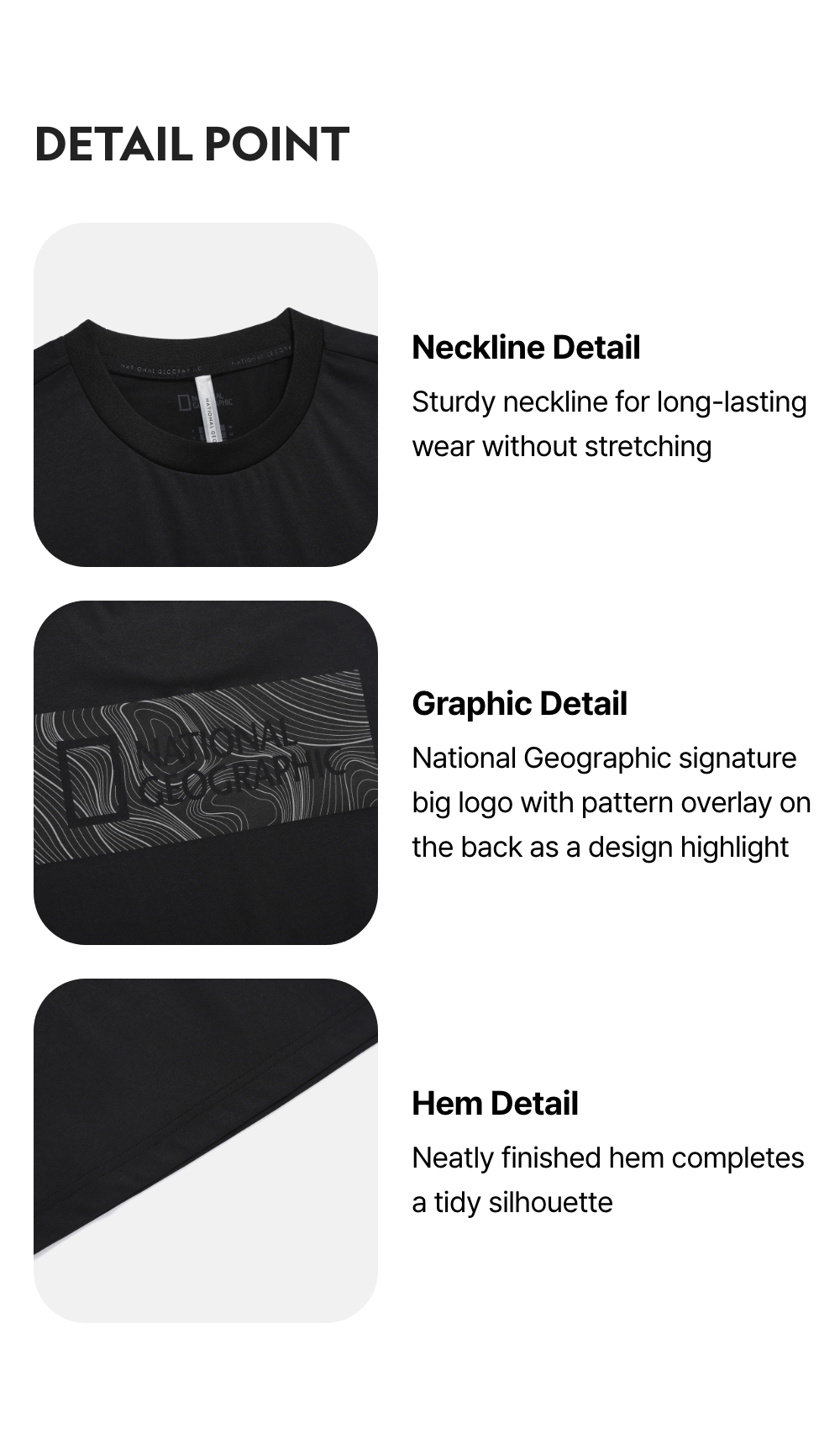 National Geographic signature big logo with pattern overlay on the back as a design highlight