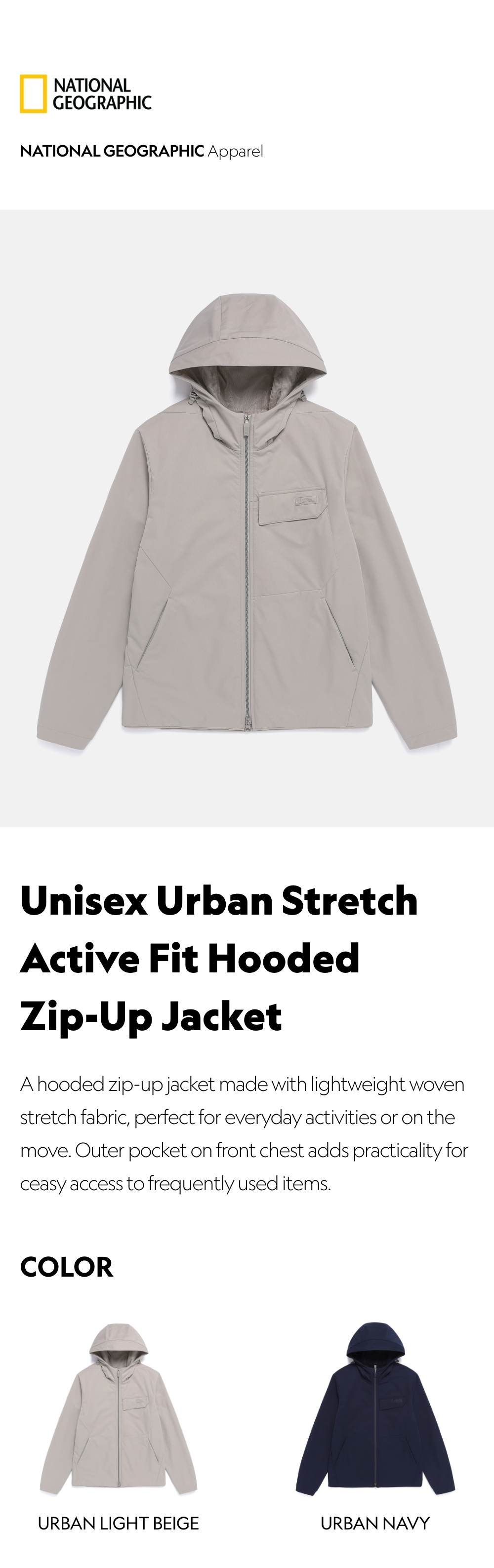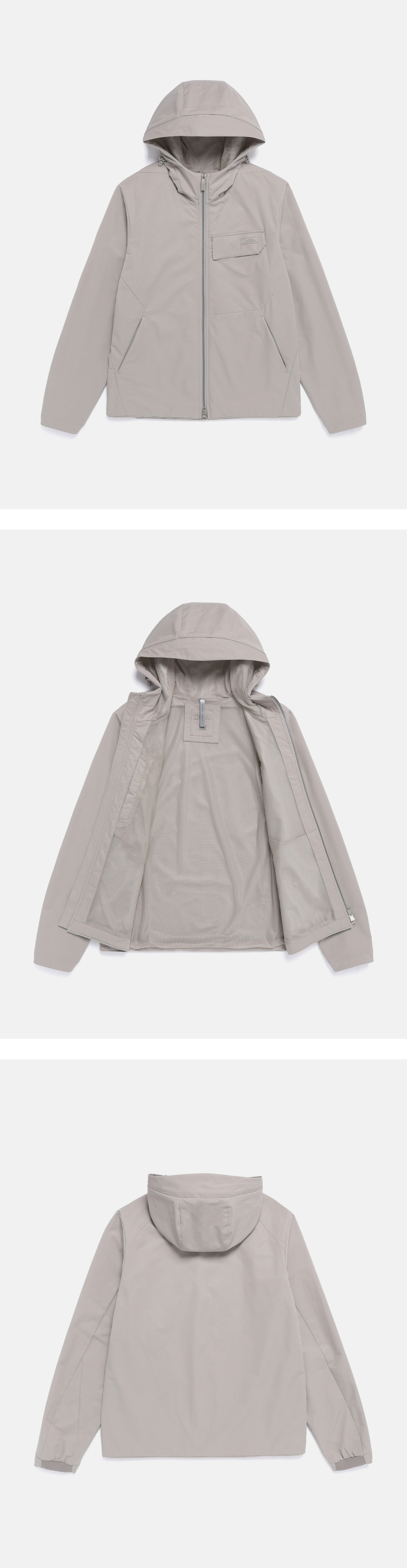 A hooded zip-up jacket made with lightweight woven stretch fabric, perfect for everyday activities or on the move. Outer pocket on front chest adds practicality for ceasy access to frequently used items.