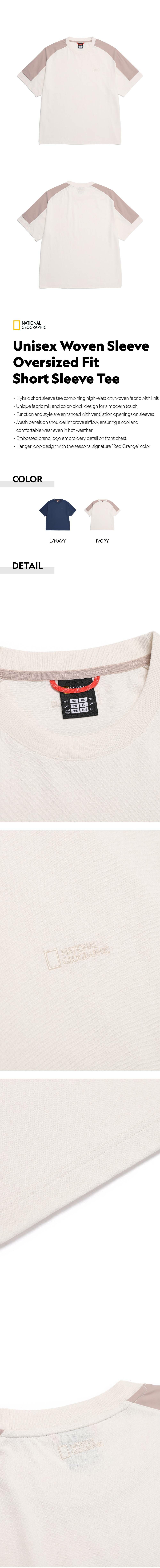 - Hybrid short sleeve tee combining high-elasticity woven fabric with knit