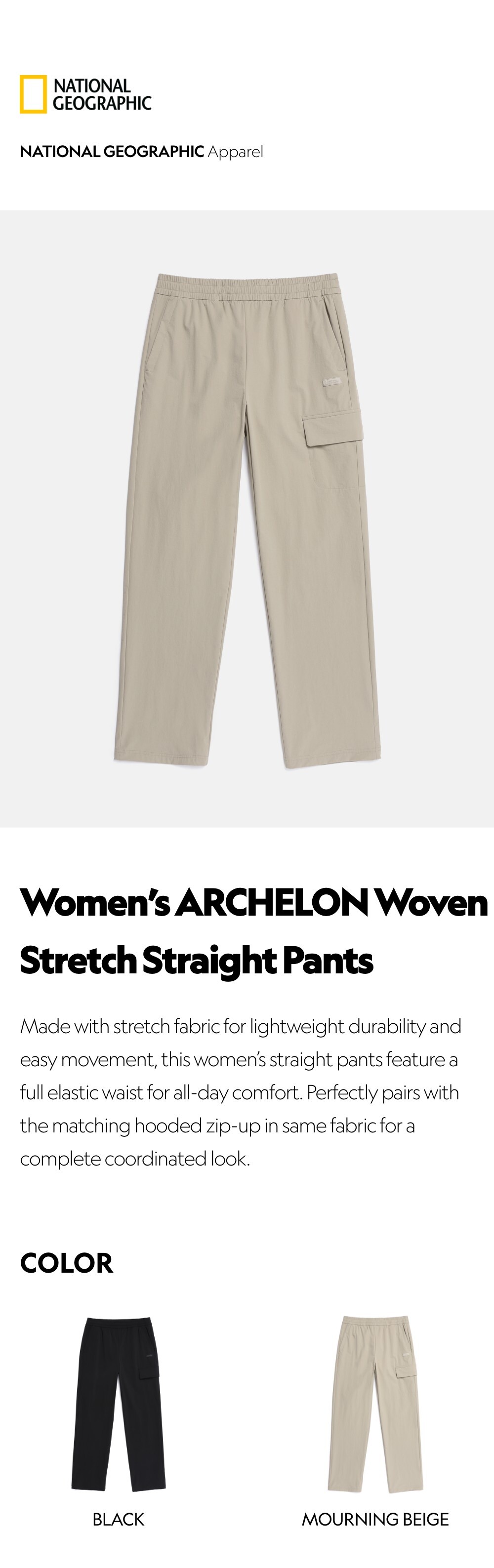 Made with stretch fabric for lightweight durability and easy movement, this women's straight pants feature a full elastic waist for all-day comfort. Perfectly pairs with the matching hooded zip-up in same fabric for a complete coordinated look.