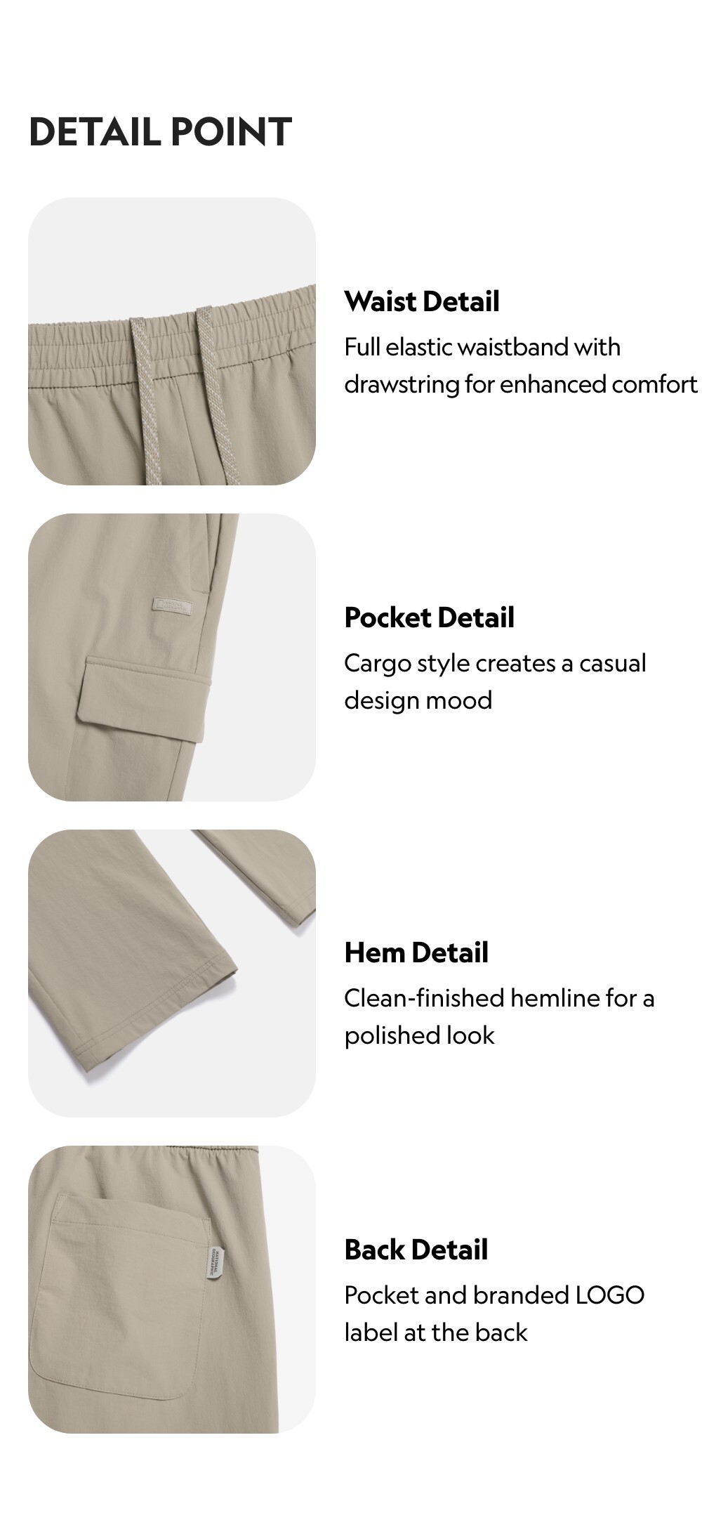 -Waist Detail: Full elastic waistband with drawstring for enhanced comfort