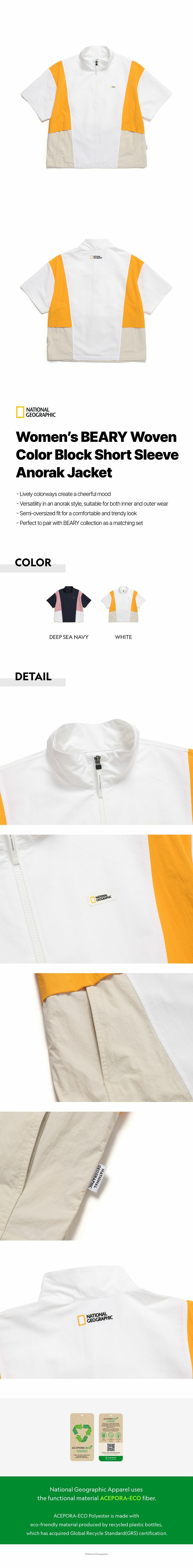 Women’s BEARY Woven Color Block Short Sleeve Anorak Jacket - WHITE