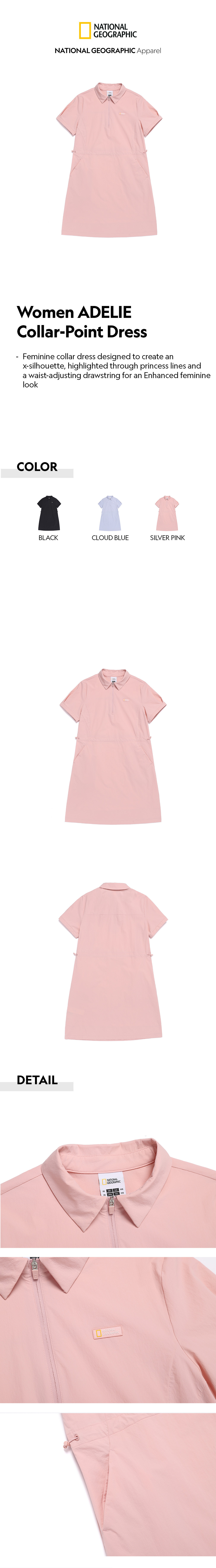 -Feminine collar dress designed to create an x-silhouette, highlighted through princess lines and a waist-adjusting drawstring for an Enhanced feminine look