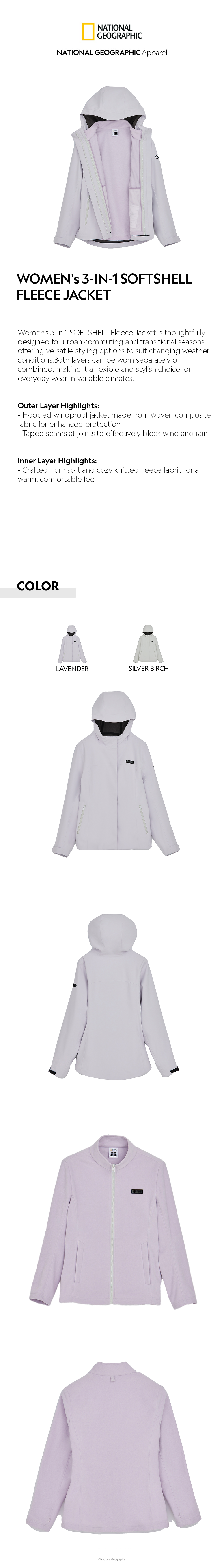 Women's 3-in-1 SOFTSHELL Fleece Jacket is thoughtfully designed for urban commuting and transitional seasons, offering versatile styling options to suit changing weather conditions.Both layers can be worn separately or combined, making it a flexible and stylish choice for everyday wear in variable climates.