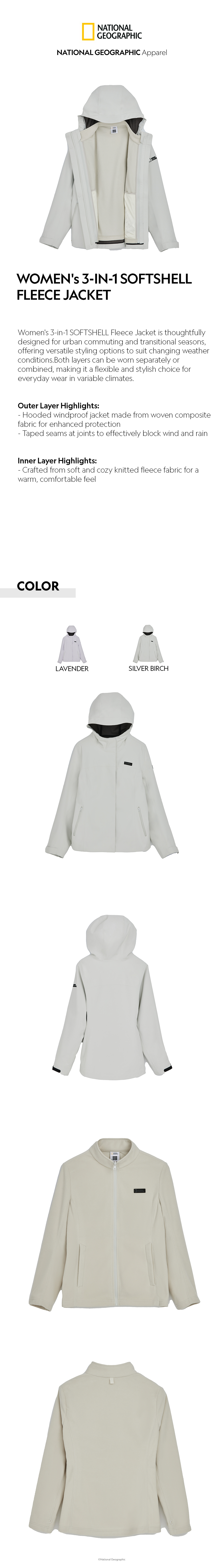 Women's 3-in-1 SOFTSHELL Fleece Jacket is thoughtfully designed for urban commuting and transitional seasons, offering versatile styling options to suit changing weather conditions.Both layers can be worn separately or combined, making it a flexible and stylish choice for everyday wear in variable climates.