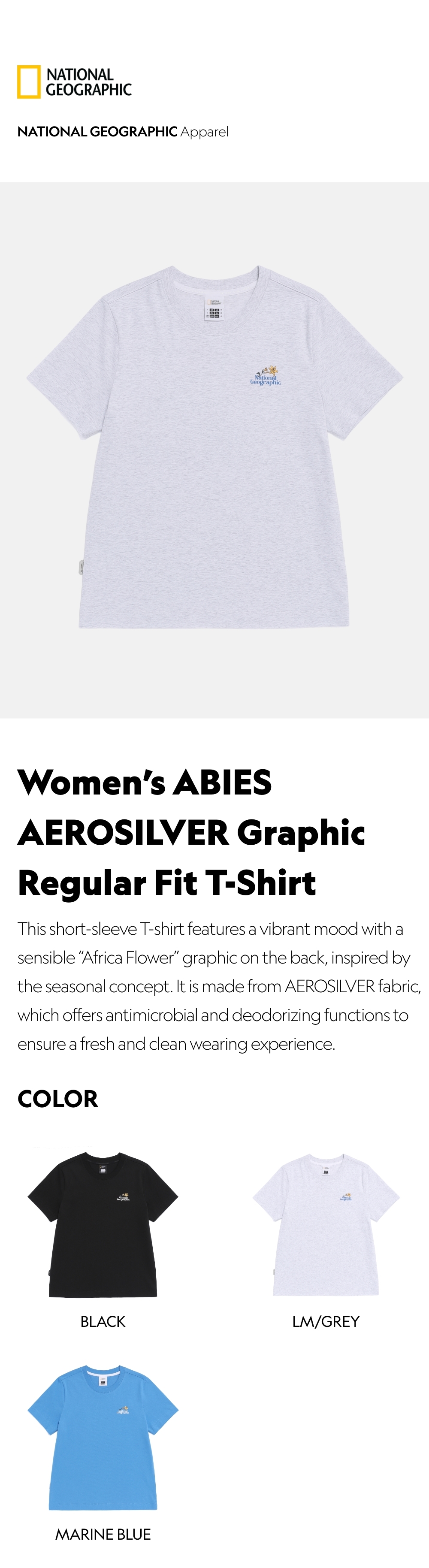This short-sleeve T-shirt features a vibrant mood with a sensible "Africa Flower" graphic on the back, inspired by the seasonal concept. It is made from AEROSILVER fabric, which offers antimicrobial and deodorizing functions to ensure a fresh and clean wearing experience.