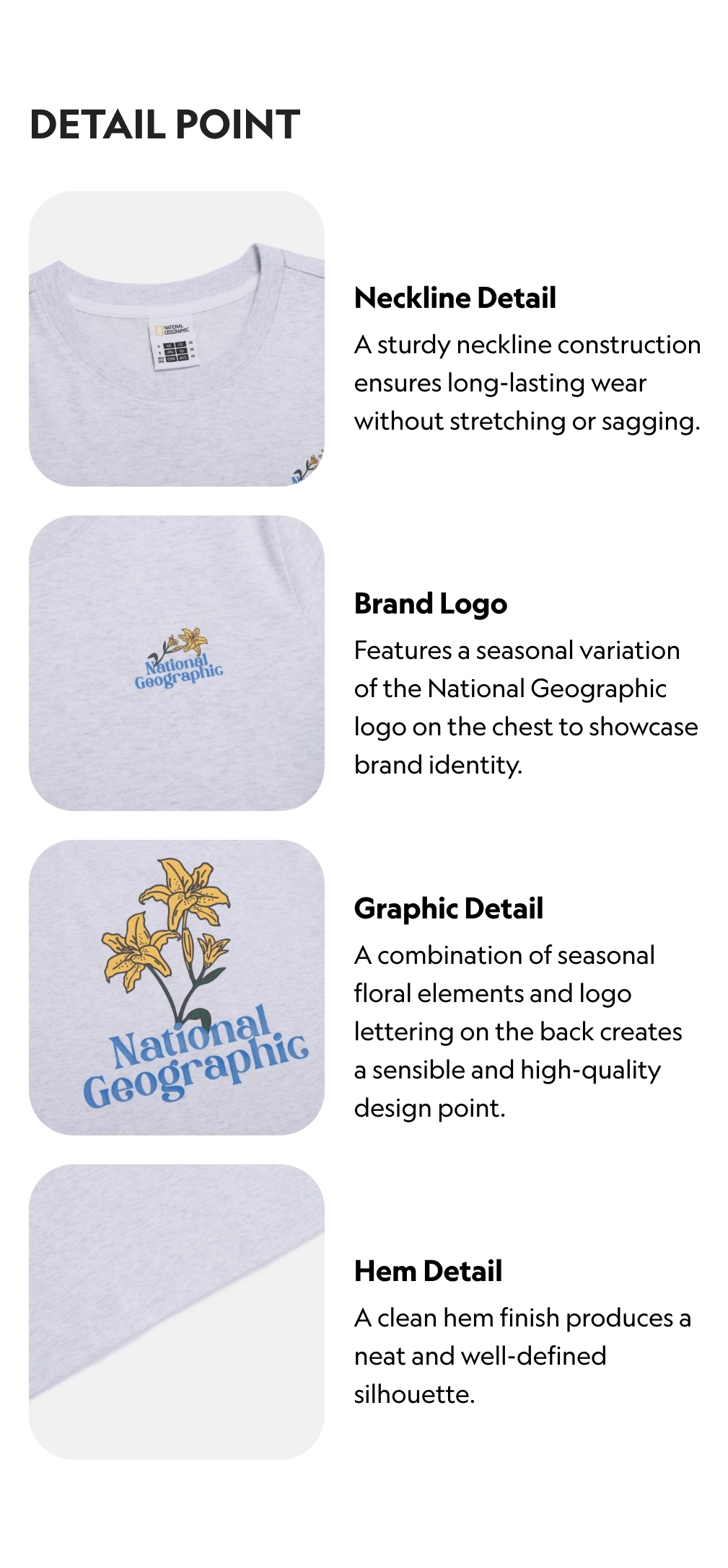 Features a seasonal variation of the National Geographic logo on the chest to showcase brand identity.