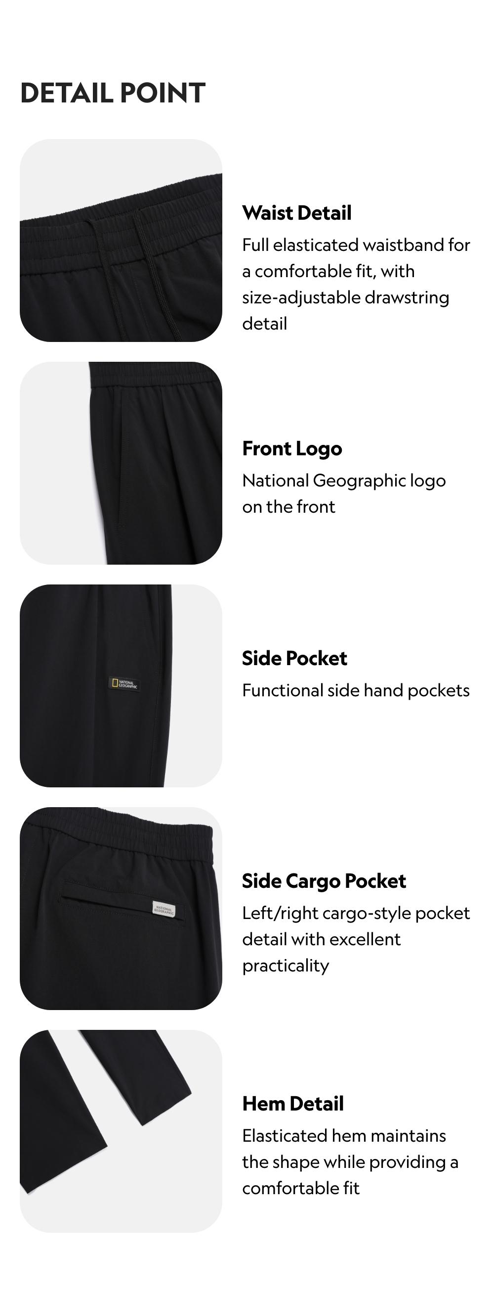 Full elasticated waistband for a comfortable fit, with size-adjustable drawstring detail