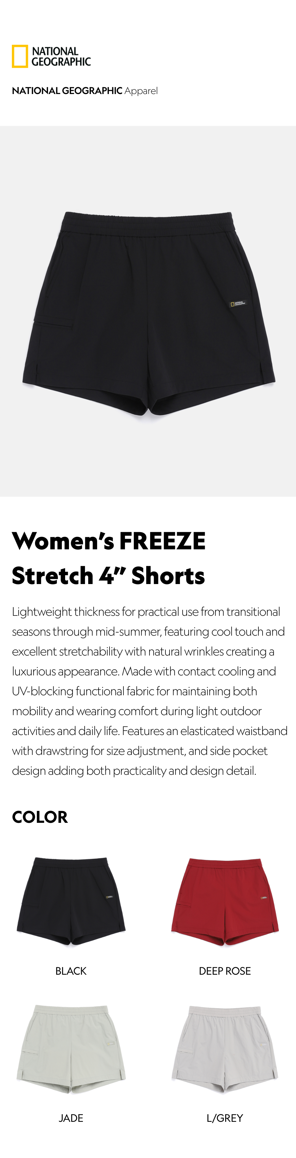 Lightweight thickness for practical use from transitional seasons through mid-summer, featuring cool touch and excellent stretchability with natural wrinkles creating a luxurious appearance. Made with contact cooling and UV-blocking functional fabric for satisfying both mobility and wearing comfort during light outdoor activities and daily life.