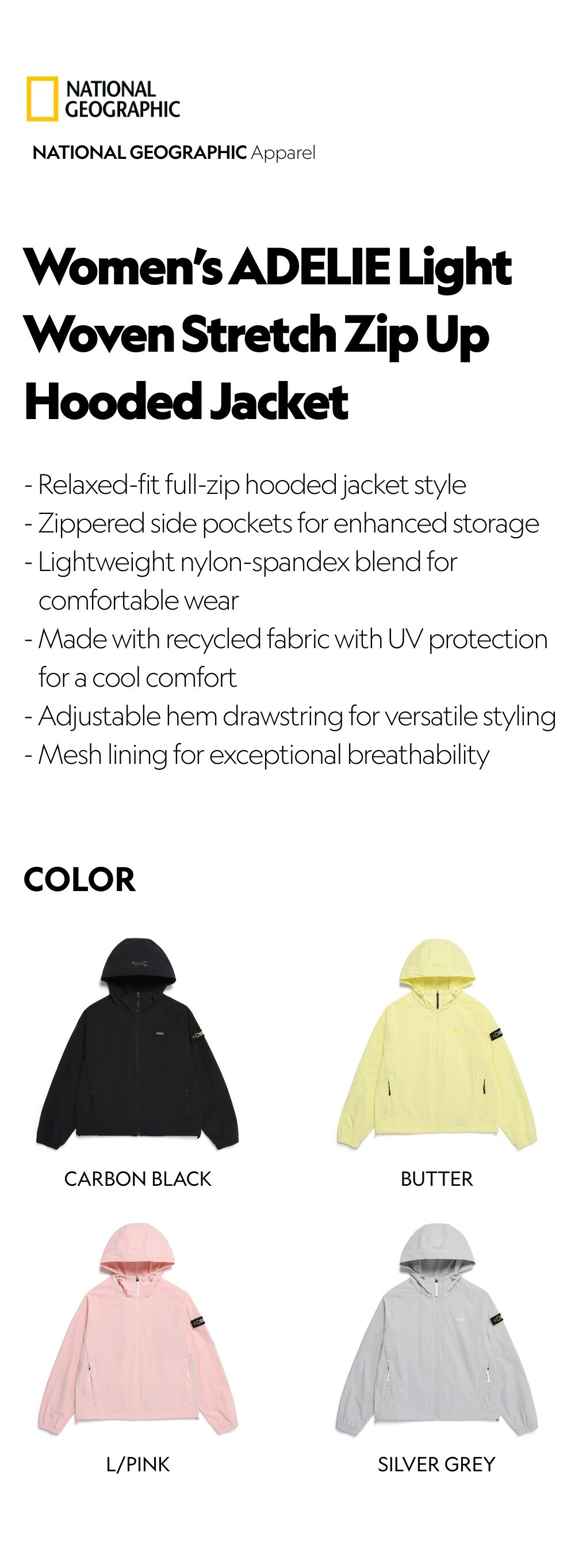 - Adjustable hem drawstring for versatile styling