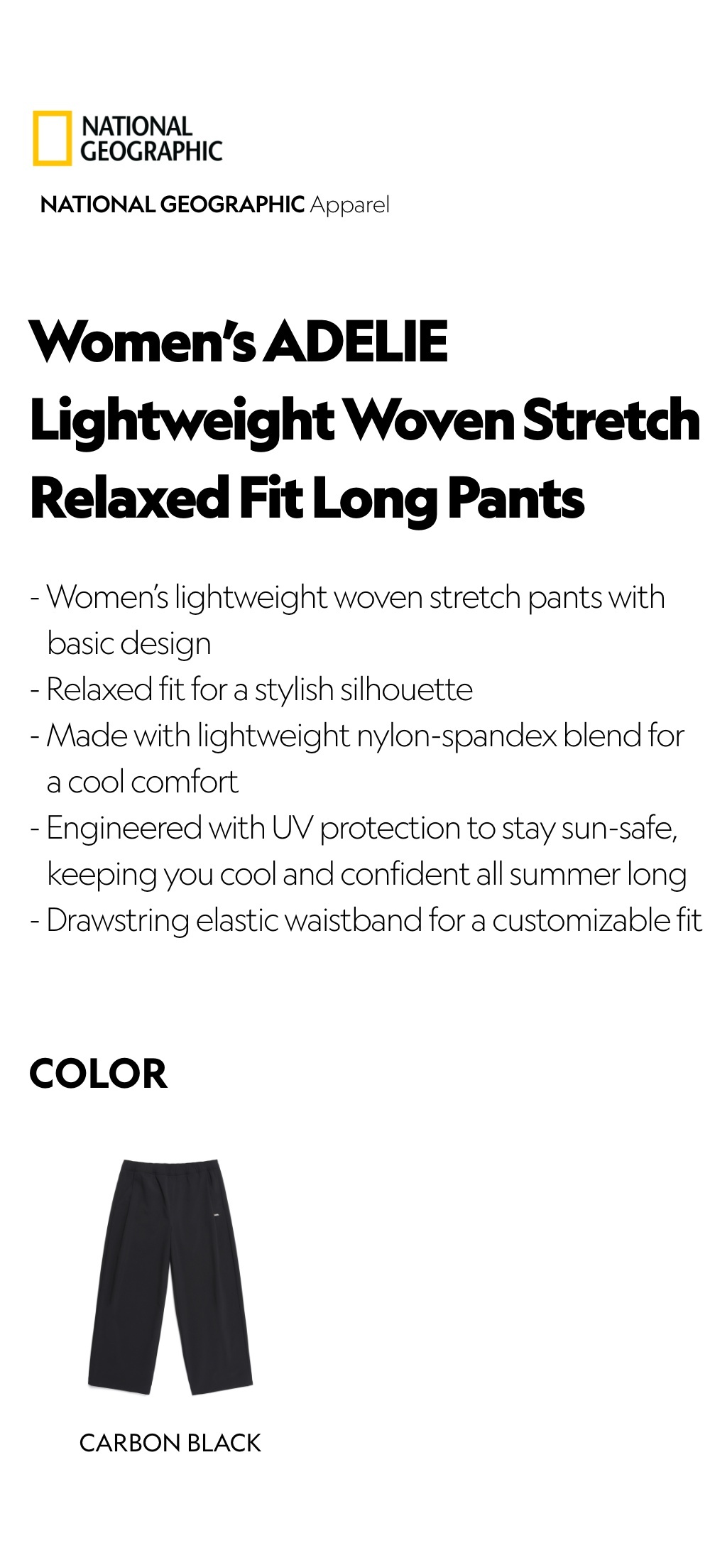 - Women’s lightweight woven stretch pants with basic design