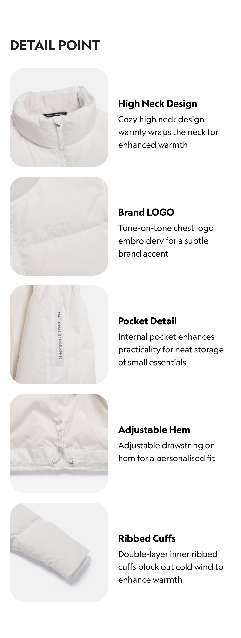 Cozy high neck design warmly wraps the neck for enhanced warmth