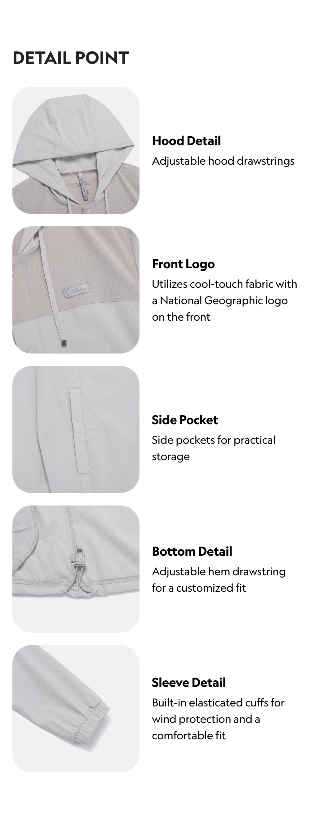 Utilizes cool-touch fabric with a National Geographic logo on the front