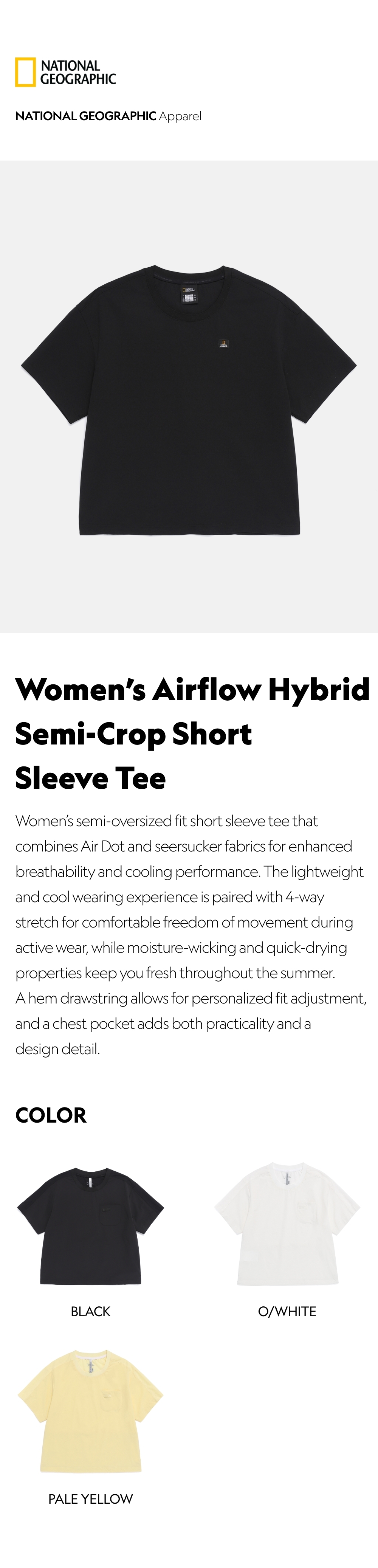 Women's semi-oversized fit short sleeve tee that combines Air Dot and seersucker fabrics for enhanced breathability and cooling performance. The lightweight and cool wearing experience is paired with 4-way stretch for comfortable freedom of movement during active wear, while moisture-wicking and quick-drying properties keep you fresh throughout the summer. A hem drawstring allows for personalized fit adjustment, and a chest pocket adds both practicality and a design detail.
