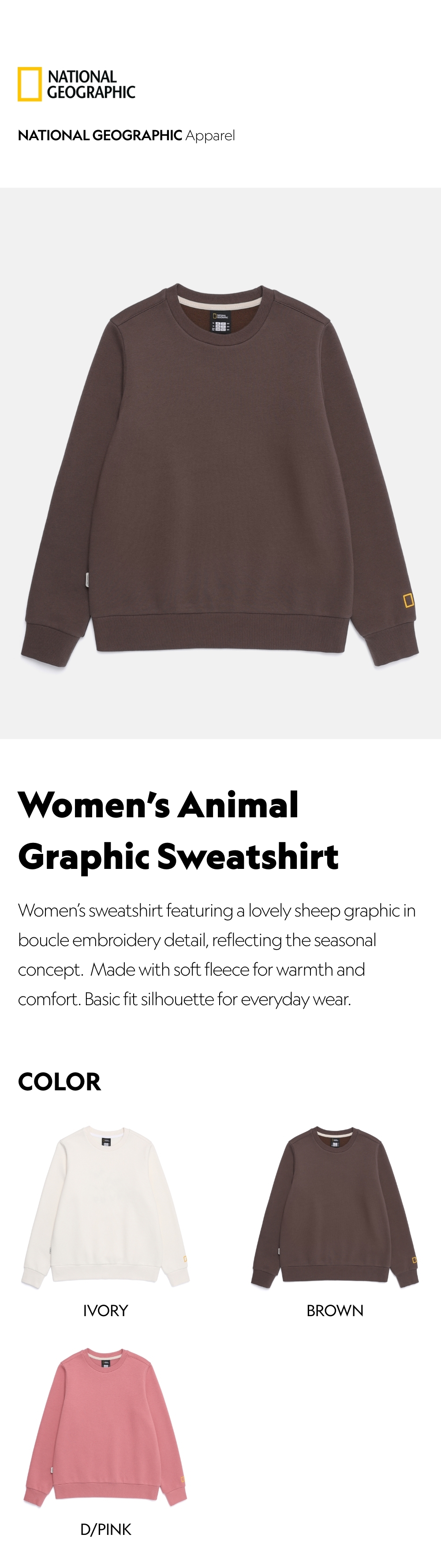 Women’s sweatshirt featuring a lovely sheep graphic in boucle embroidery detail, reflecting the seasonal concept.