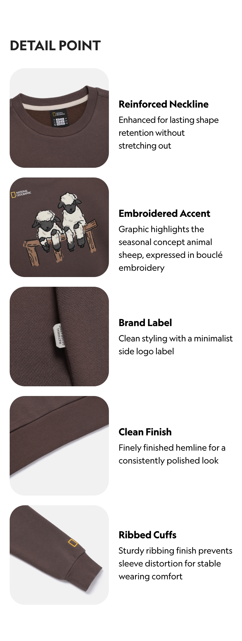 Graphic highlights the seasonal concept animal sheep, expressed in bouclé embroidery