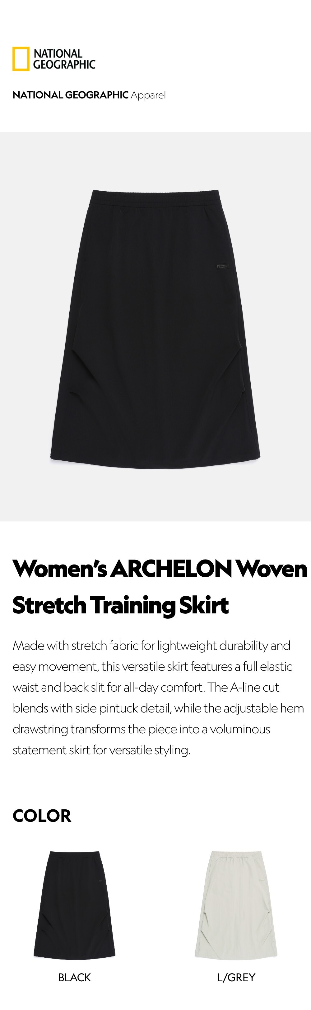 Made with stretch fabric for lightweight durability and easy movement, this versatile skirt features a full elastic waist and back slit for all-day comfort. The A-line cut blends with side pintuck detail, while the adjustable hem drawstring transforms the piece into a voluminous statement skirt for versatile styling.