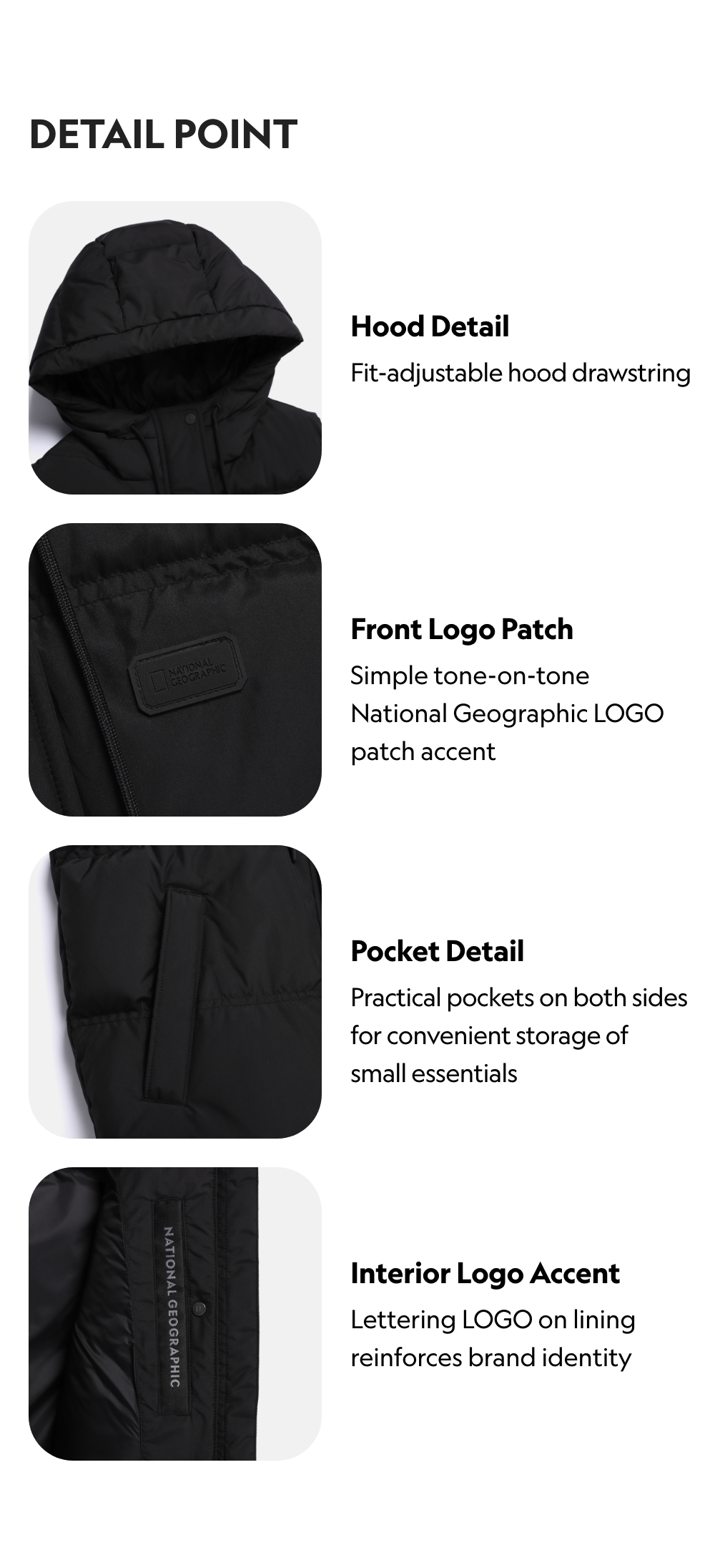 Hood features adjustable drawstring, while elasticated armholes and hem seal out cold air for superior wind protection.
