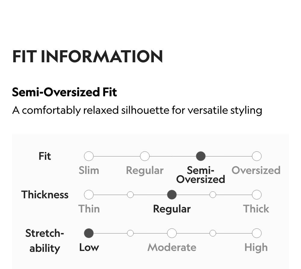 Semi-Oversized Fit / Thickness: Regular / Stretchability: Low