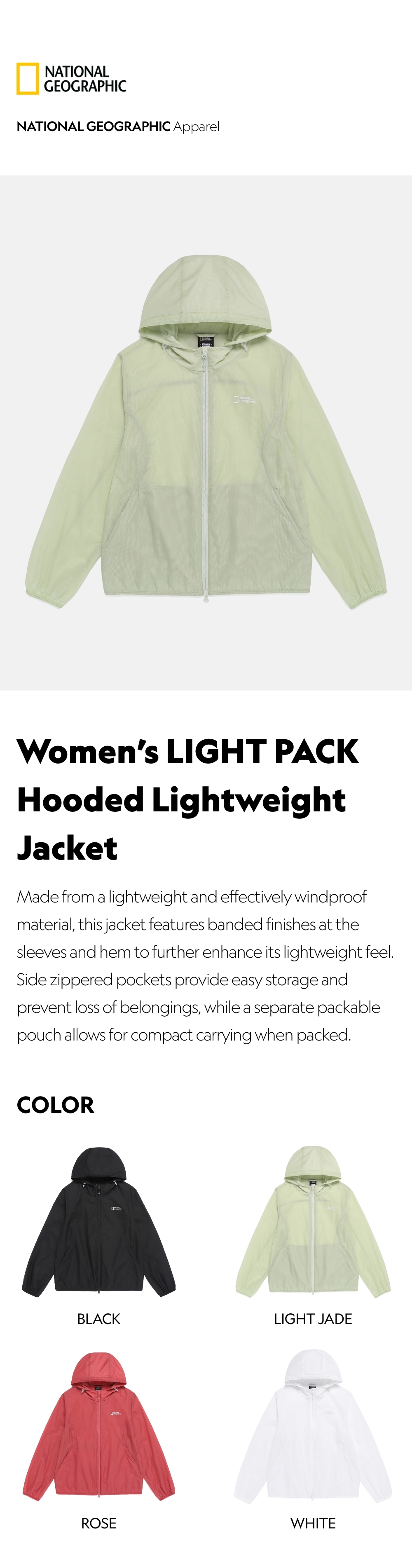 Made from a lightweight and effectively windproof material, this jacket features banded finishes at the sleeves and hem to further enhance its lightweight feel. Side zippered pockets provide easy storage and prevent loss of belongings, while a separate packable pouch allows for compact carrying when packed.
