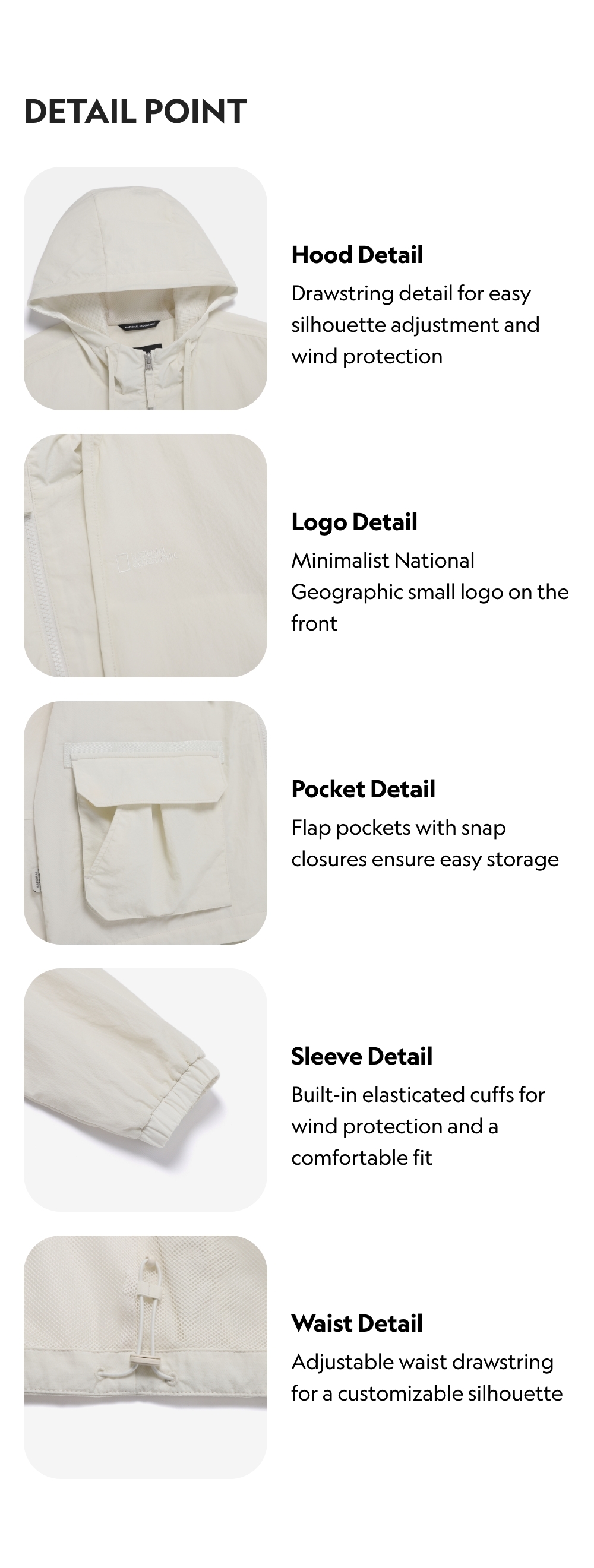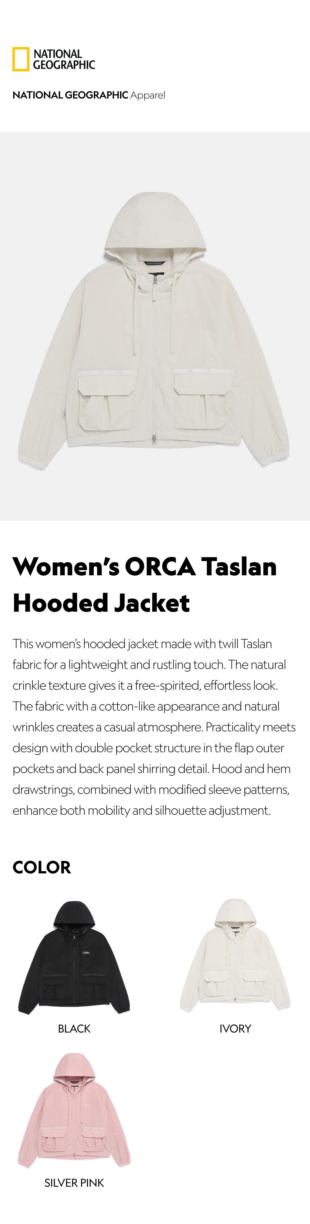 This women's hooded jacket made with twill Taslan fabric for a lightweight and rustling touch. The natural crinkle texture gives it a free-spirited, effortless look. The fabric with a cotton-like appearance and natural wrinkles creates a casual atmosphere. Practicality meets design with double pocket structure in the flap outer pockets and back panel shirring detail. Hood and hem drawstrings, combined with modified sleeve patterns, enhance both mobility and silhouette adjustment.