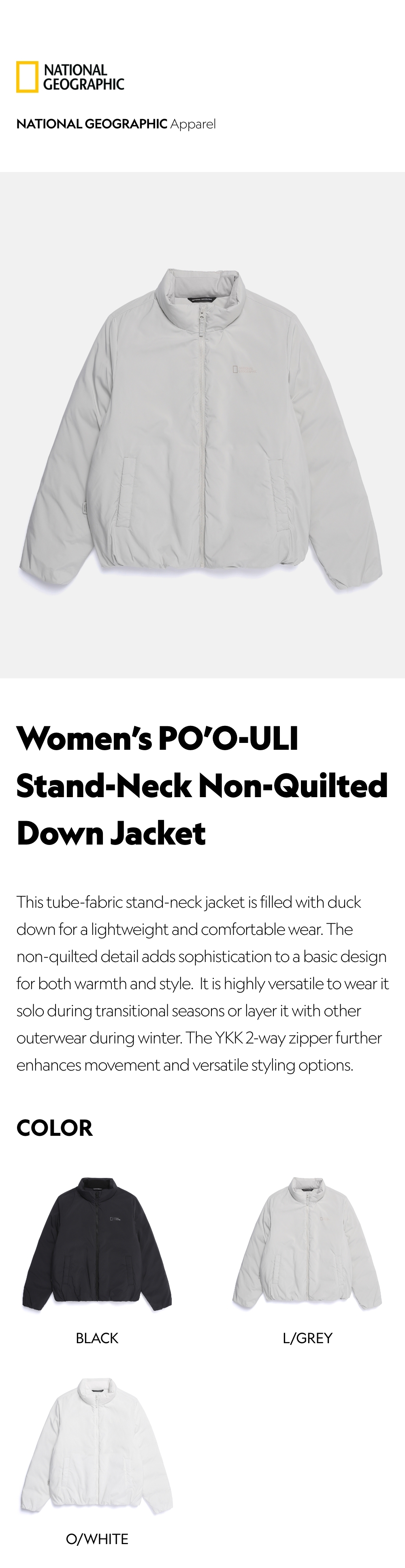 This tube-fabric stand-neck jacket is filled with duck down for a lightweight and comfortable wear.