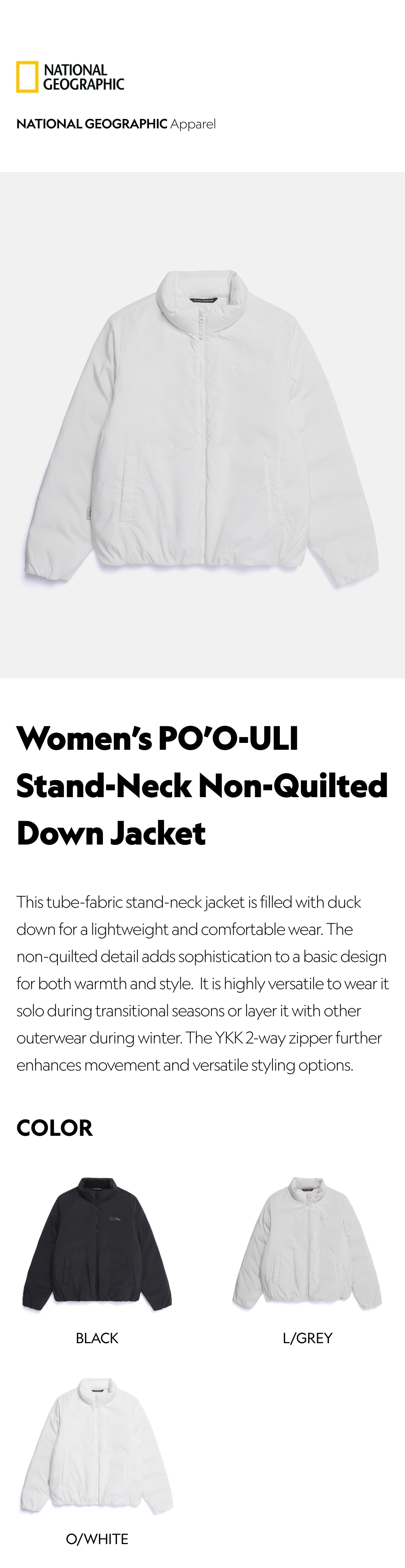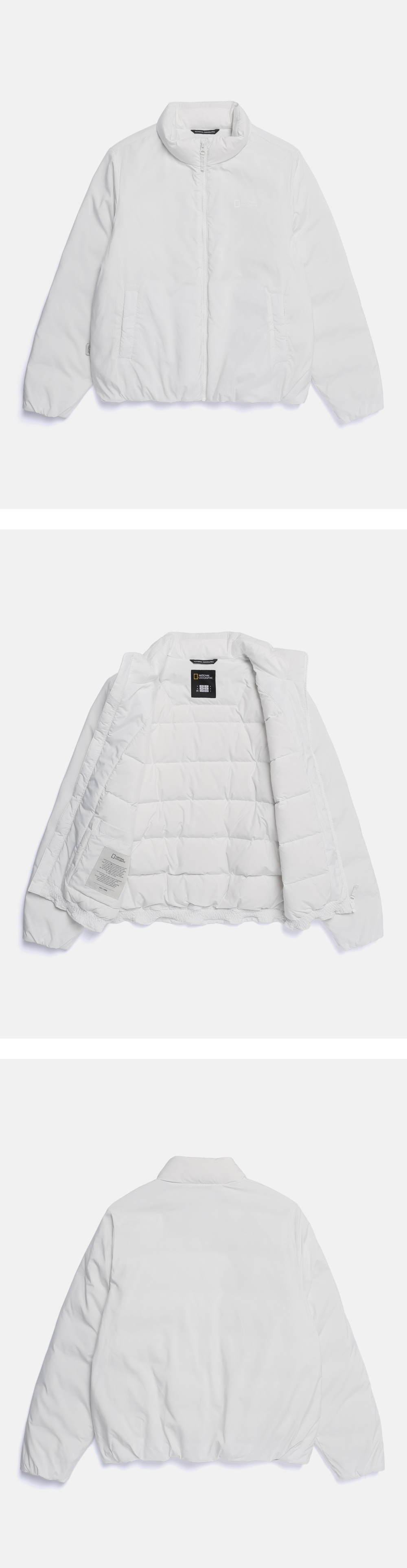 This tube-fabric stand-neck jacket is filled with duck down for a lightweight and comfortable wear.