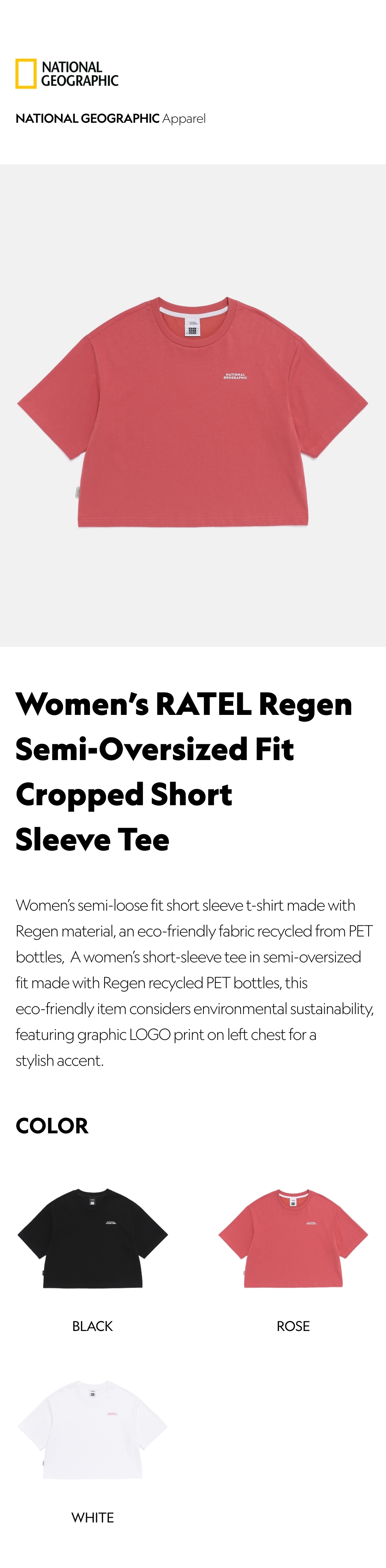 Women's semi-loose fit short sleeve t-shirt made with Regen material, an eco-friendly fabric recycled from PET bottles,