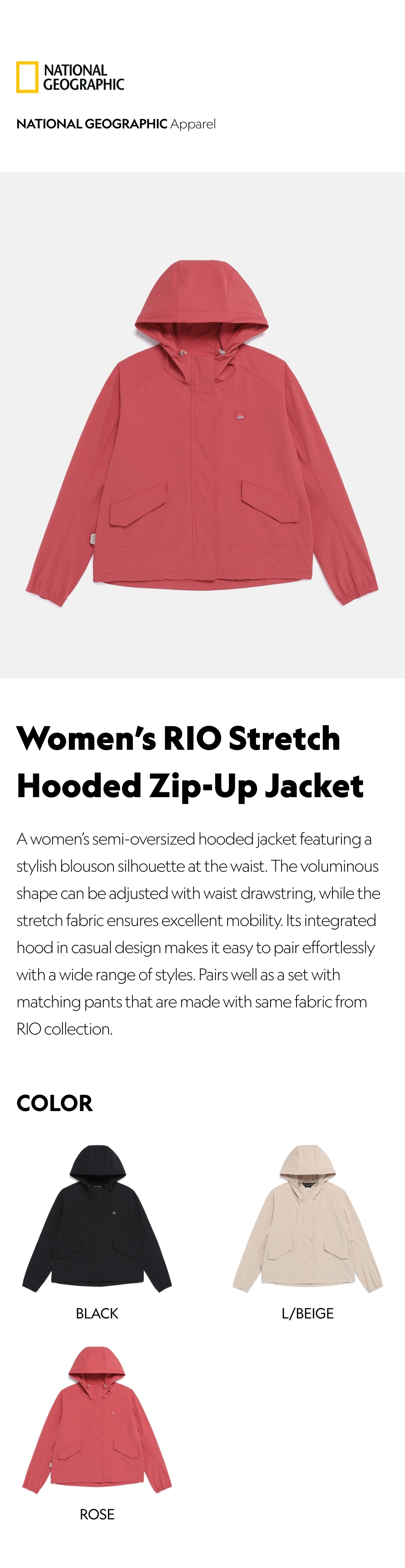 A women's semi-oversized hooded jacket featuring a stylish blouson silhouette at the waist. The voluminous shape can be adjusted with waist drawstring, while the stretch fabric ensures excellent mobility.