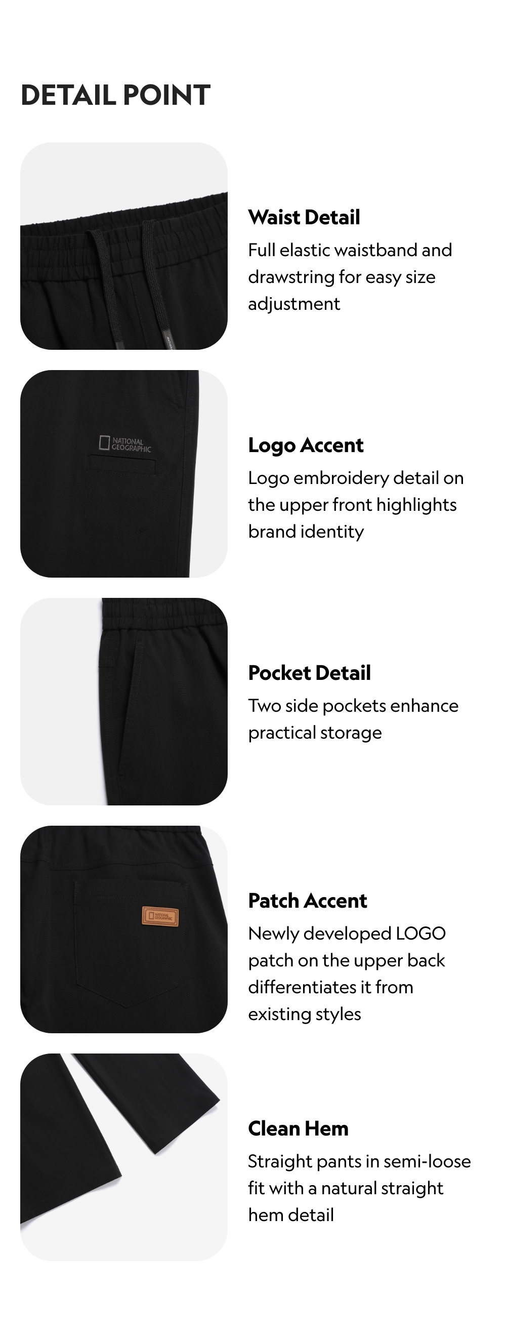 The newly developed LOGO patch design differentiates from existing pant designs.