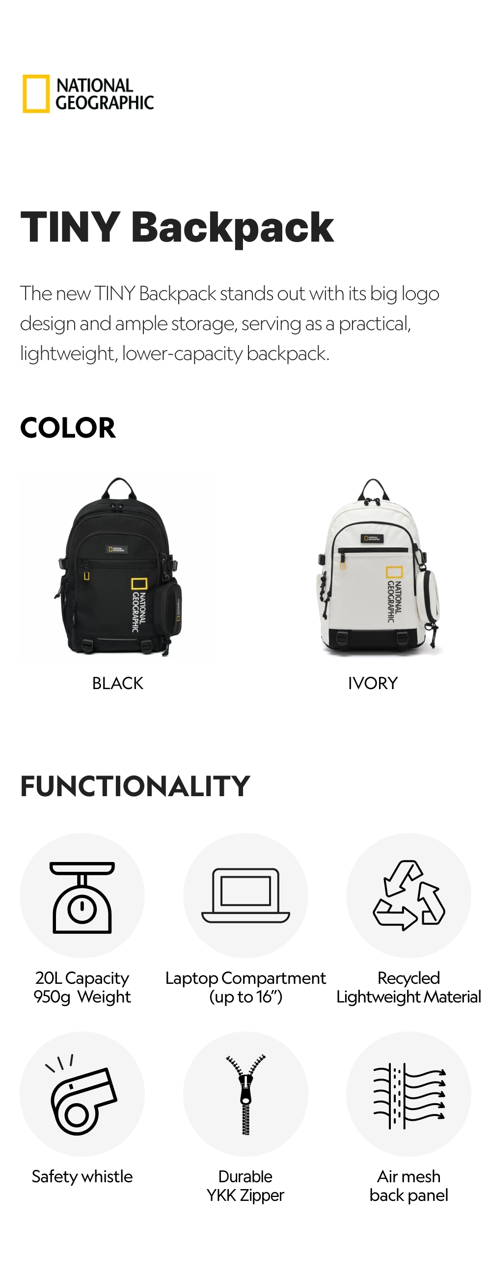 The new TINY Backpack stands out with its big logo design and ample storage, serving as a practical, lightweight, lower-capacity backpack.