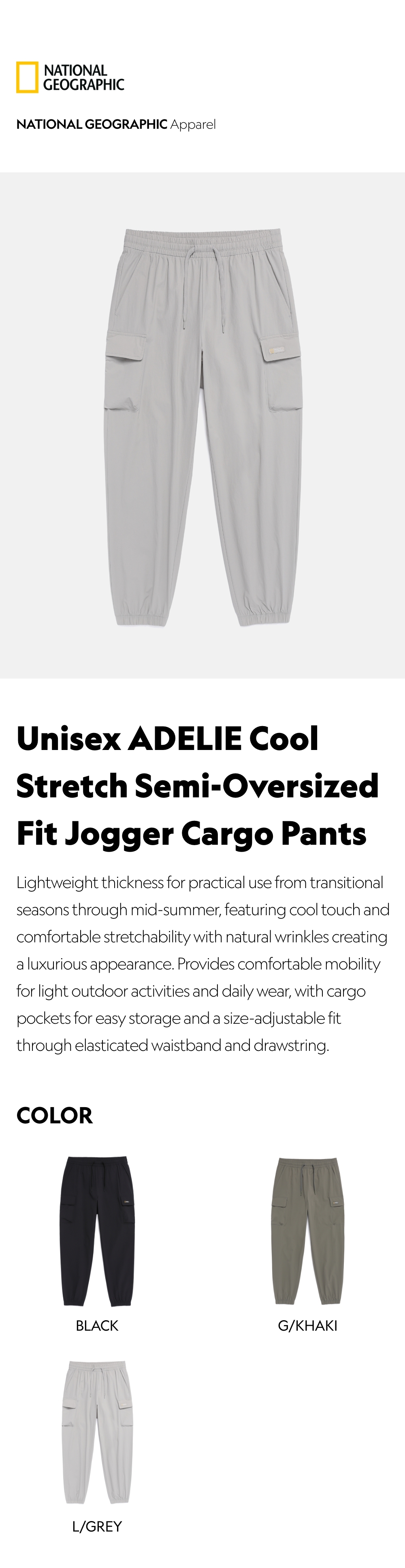 Unisex ADELIE Cool Stretch Semi-Oversized Fit Jogger Cargo Pants - L/GREY