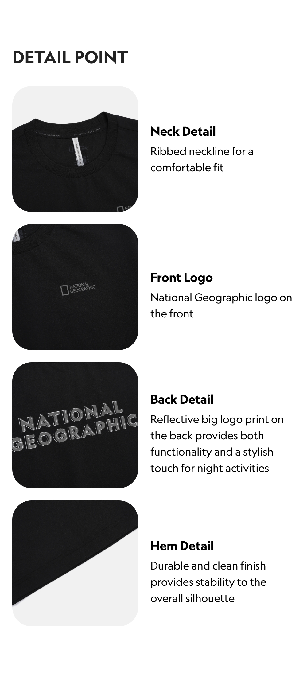 Made with stretch fabric that naturally extends with movement for comfortable wear even during high-activity situations. ESPOL material quickly absorbs and dries sweat, maintaining a fresh feeling during workouts or outdoor activities. The relaxed semi-oversized fit silhouette makes this a versatile item suitable as everyday wear or activewear. The back features a reflective big logo print providing visibility for night activities and a stylish touch.