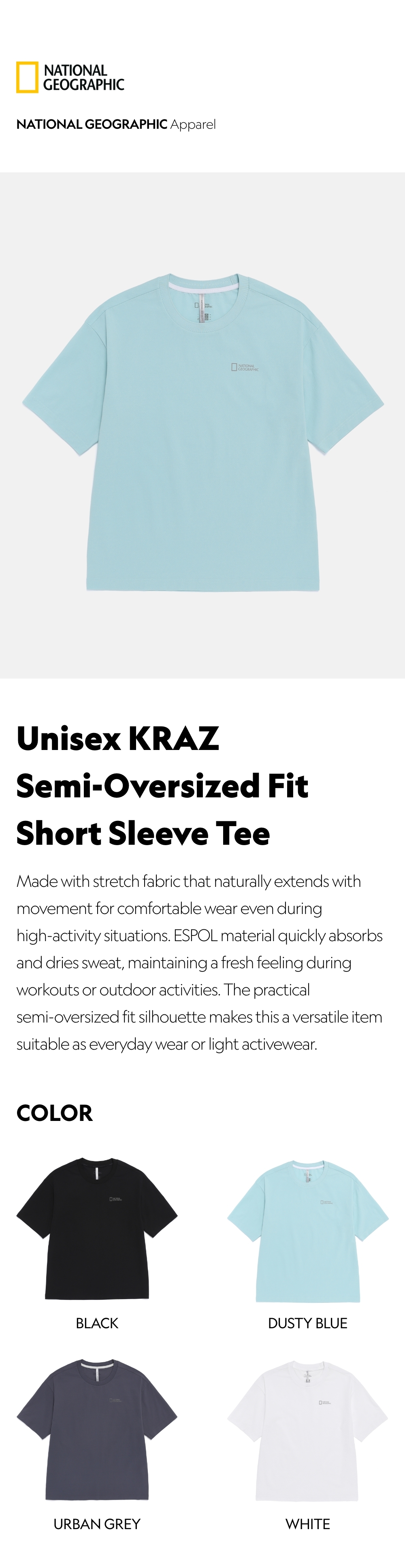 Made with stretch fabric that naturally extends with movement for comfortable wear even during high-activity situations. ESPOL material quickly absorbs and dries sweat, maintaining a fresh feeling during workouts or outdoor activities. The practical semi-oversized fit silhouette makes this a versatile item suitable as everyday wear or light activewear.