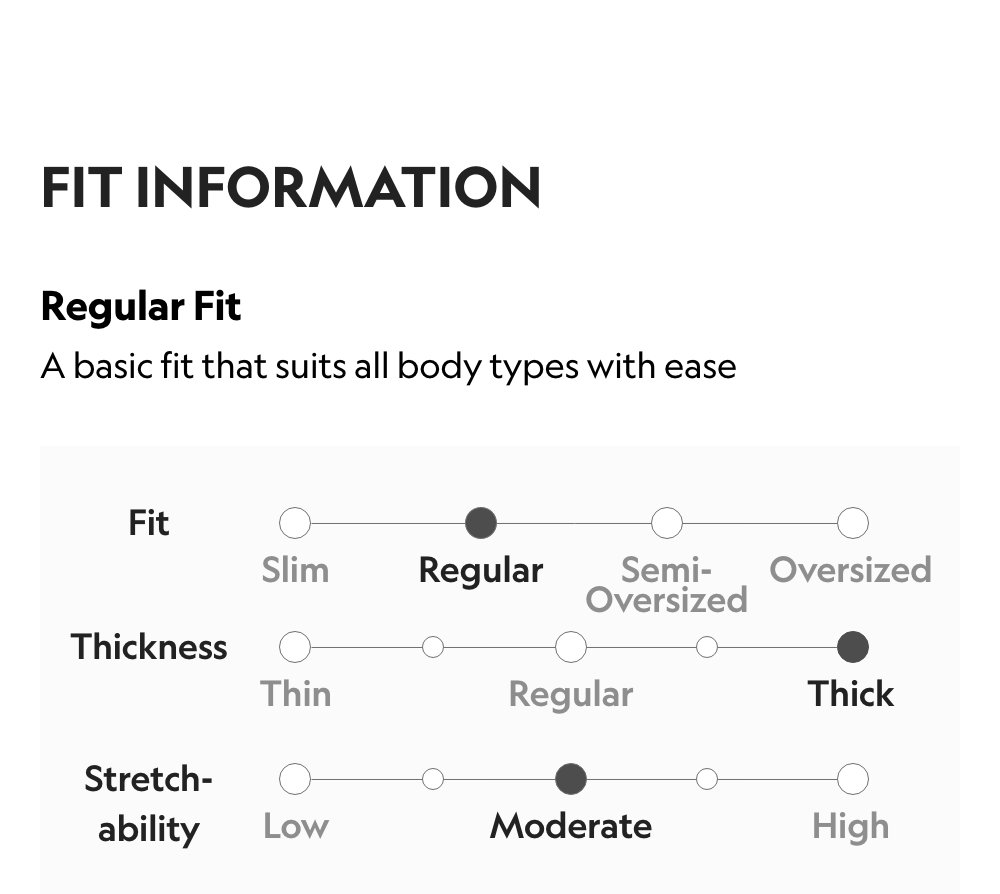 Regular Fit / Thickness : Thick / Stretchability : Moderate