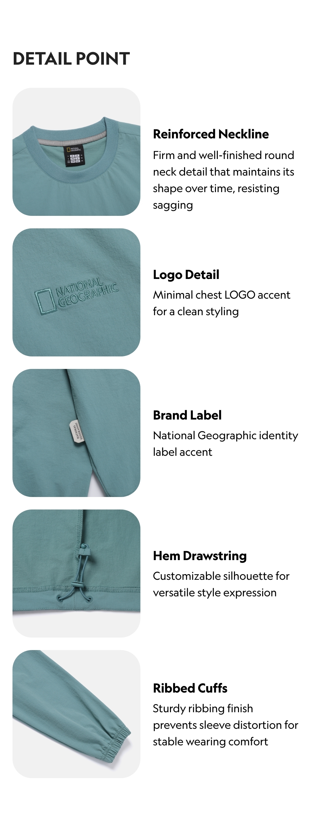 -Ribbed Cuffs: Sturdy ribbing finish prevents sleeve distortion for stable wearing comfort