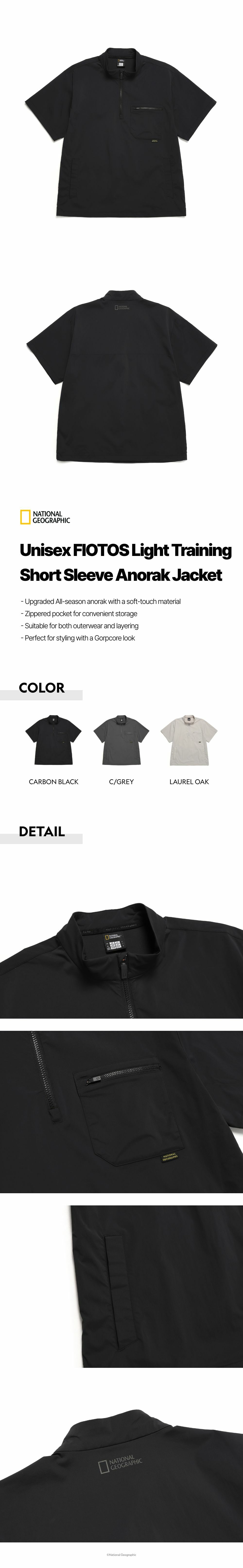Unisex FIOTOS Light Training Short Sleeve Anorak Jacket - CARBON BLACK