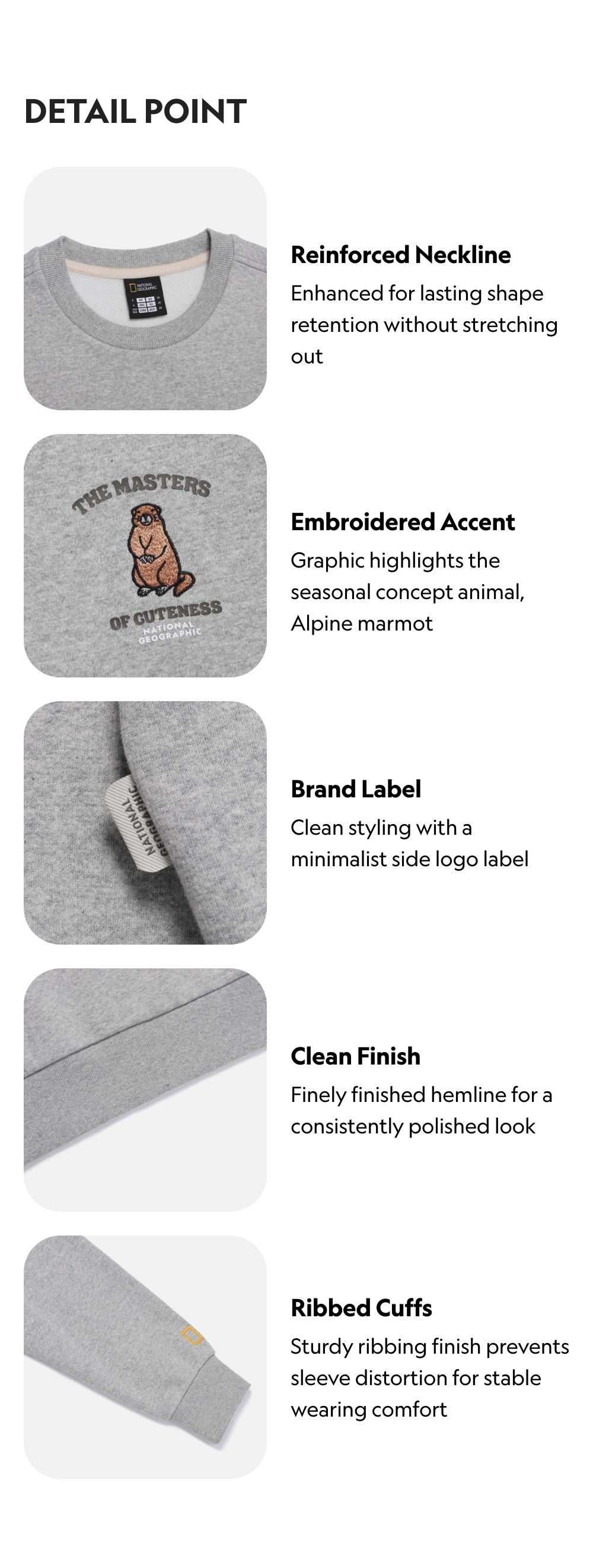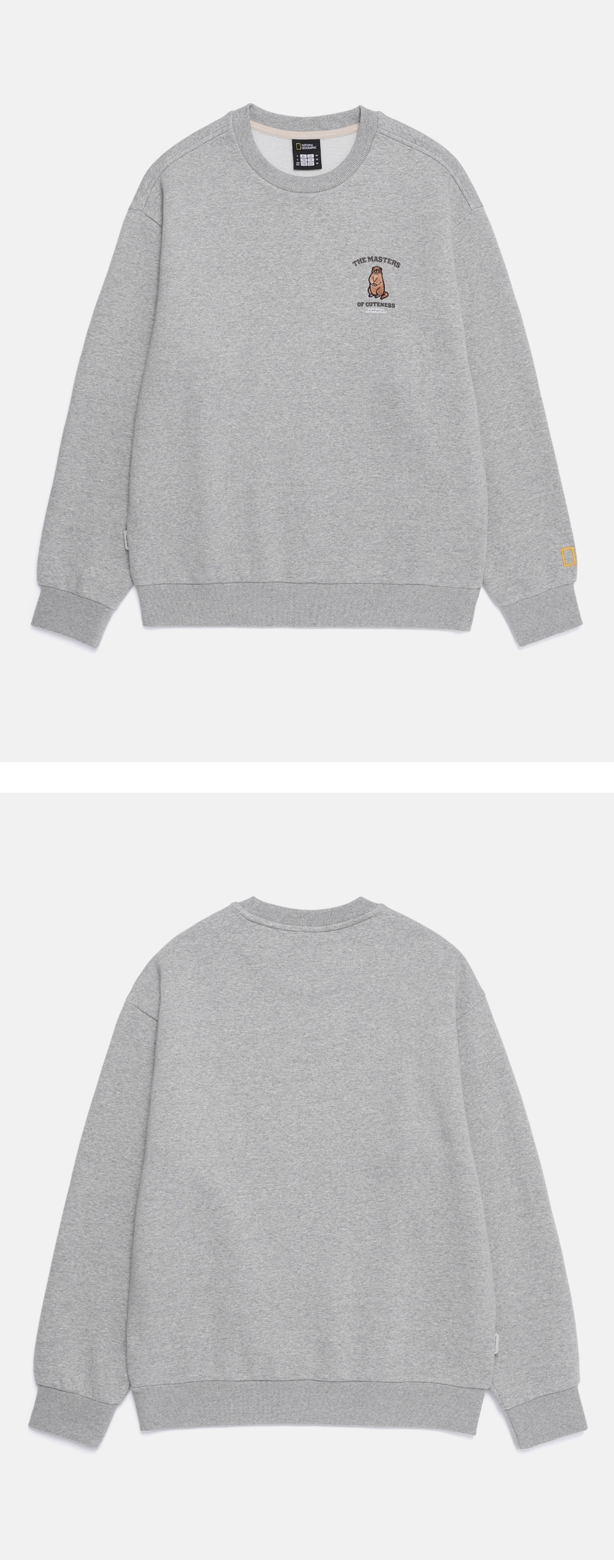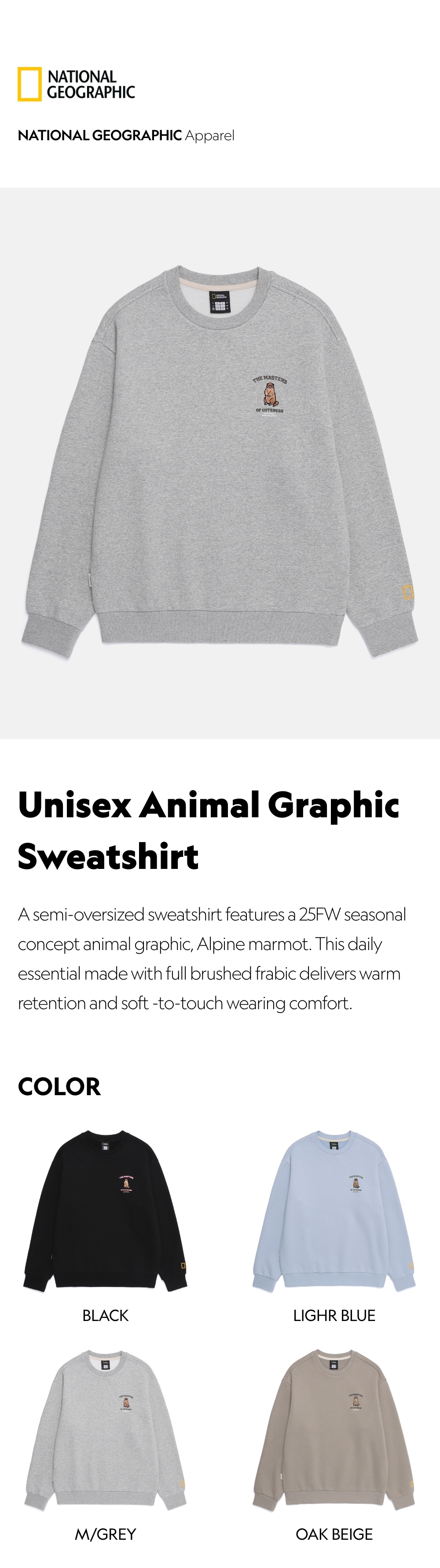 A semi-oversized sweatshirt features a 25FW seasonal concept animal graphic, Alpine marmot.