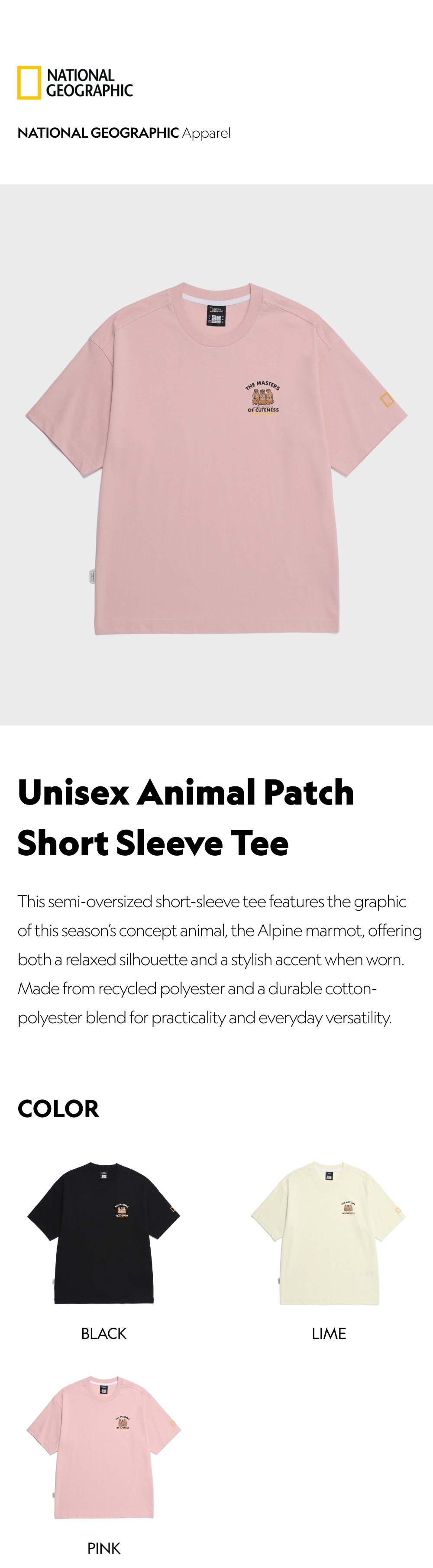 - This semi-oversized short-sleeve tee features the graphic of this season’s concept animal, the Alpine marmot, offering both a relaxed silhouette and a stylish accent when worn. Made from recycled polyester and a durable cotton-polyester blend for practicality and everyday versatility.