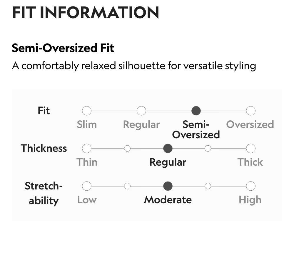 -Semi-oversized FIt: A comfortably relaxed silhouette for versatile styling