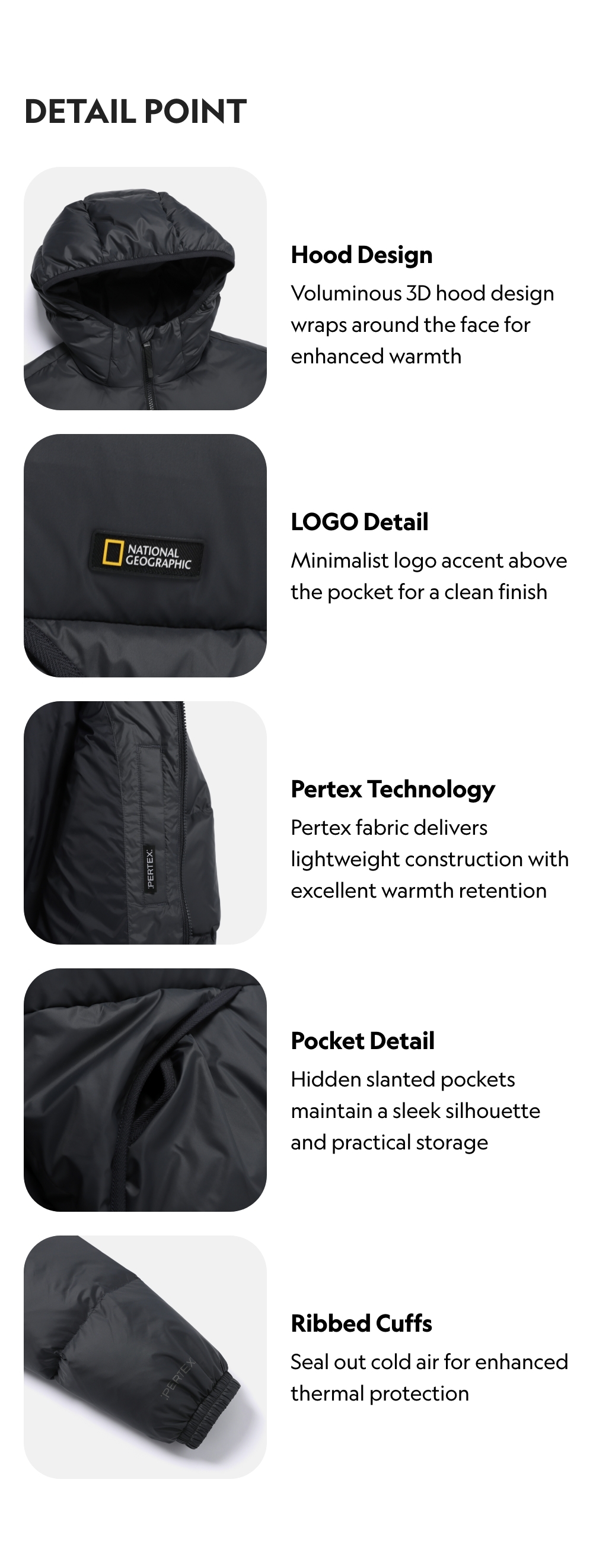 Voluminous 3D hood design wraps around the face for enhanced warmth