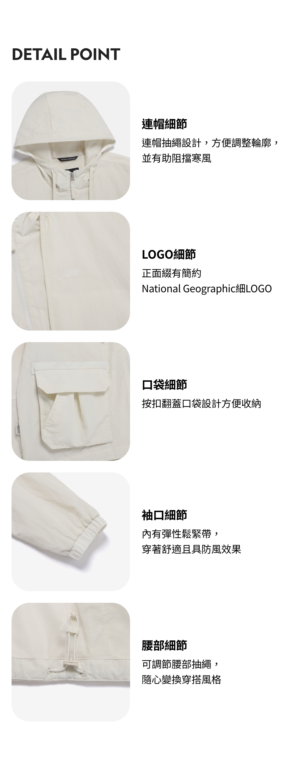 連帽抽繩設計,方便調整輪廓,並有助阻擋寒風