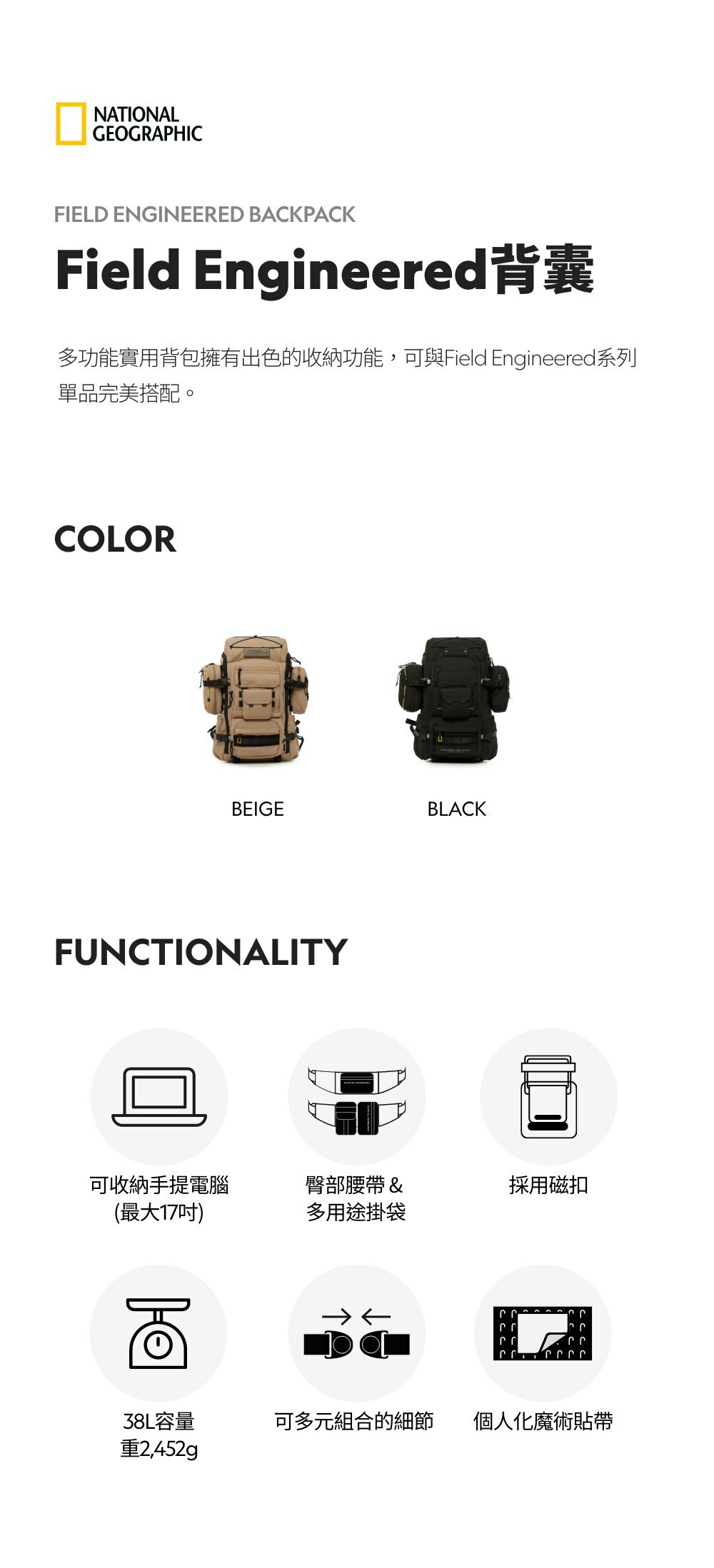 多功能實用背包擁有出色的收納功能,可與Field Engineered系列單品完美搭配。