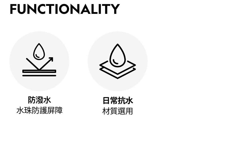 - 表面經過防潑水加工處理,具備輕量日常抗水與防污功能,有助保護衣物